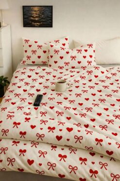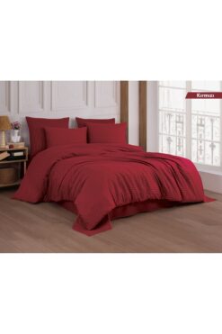 moon secret tekstil Premıum Kırmızı Renk Pamuk Saten Çift Kişilik Nevresim Takımı