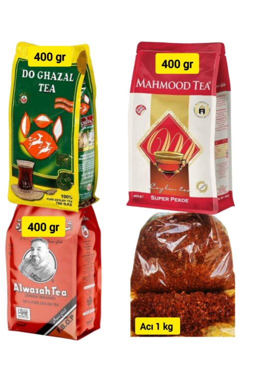 Do ghazal tea 400gr mamood Tea 400 gram alwazah Tea 400 gram Acili pul biberb1000 gram olarak gönderilecektir