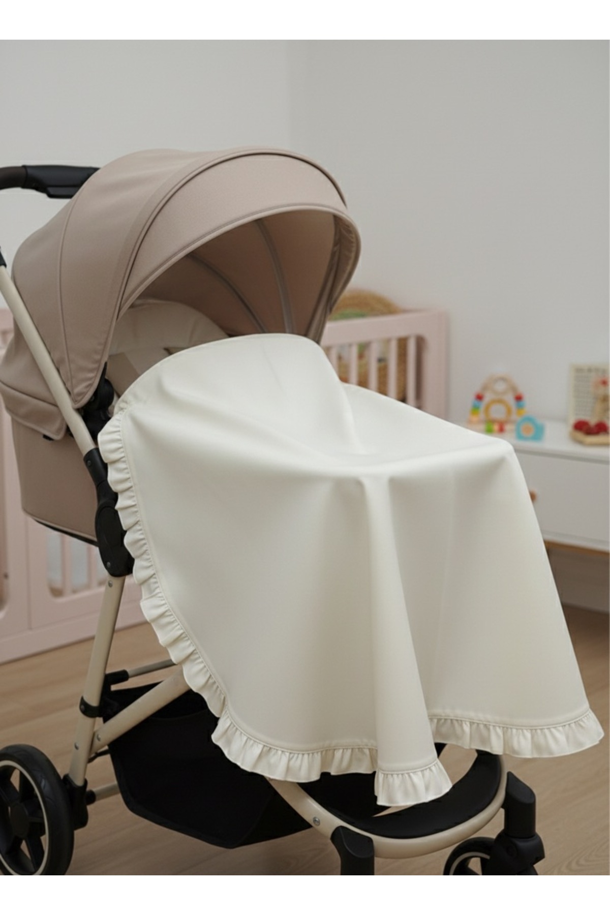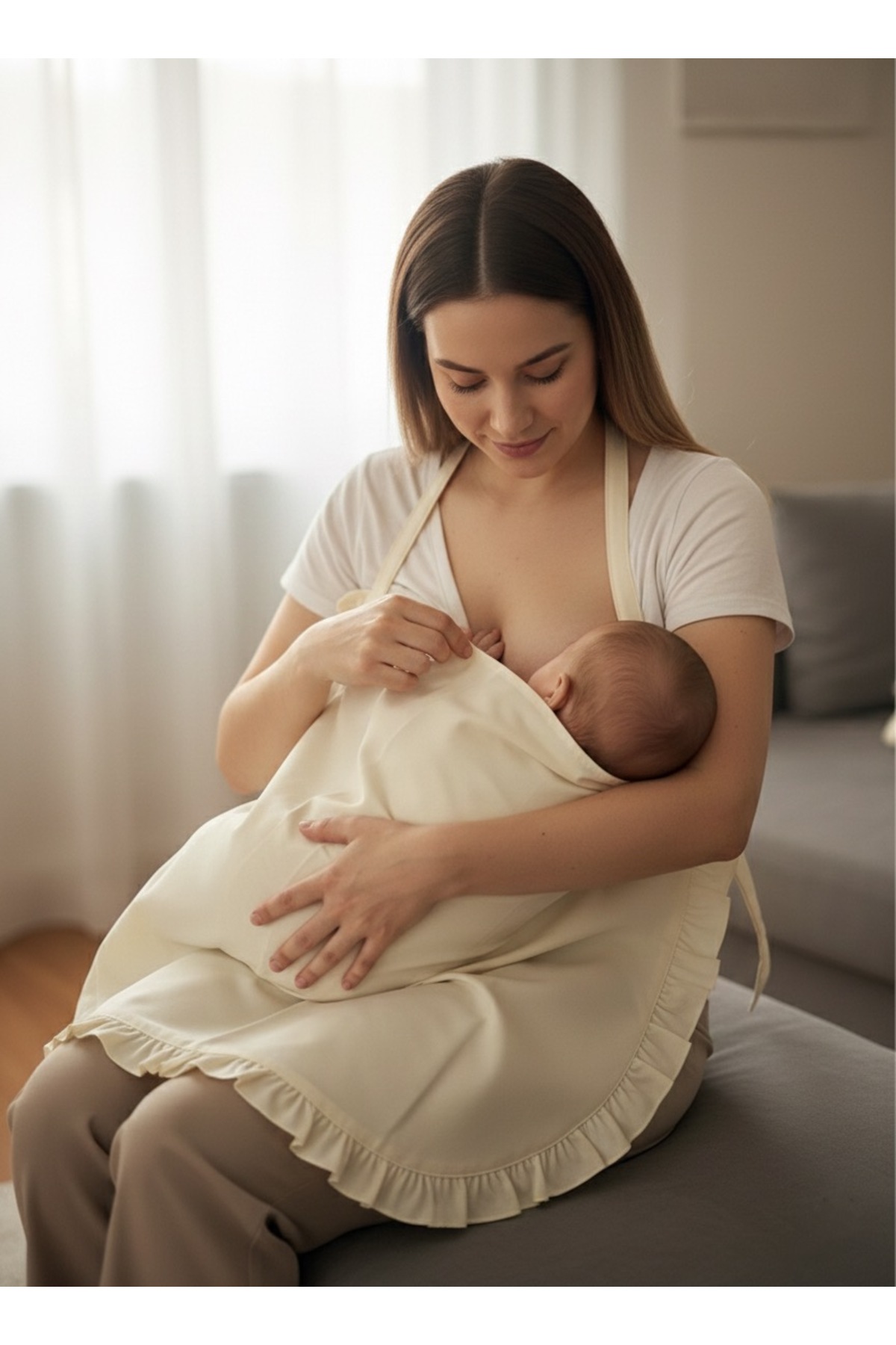 Alya Tiny %100 Pamuk Emzirme Örtüsü-Nefes Alabilen Yumuşak Kumaş -Fırfır Detaylı 2 Katlı İç Göstermez