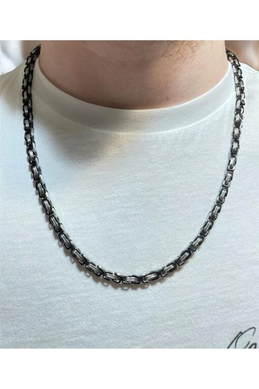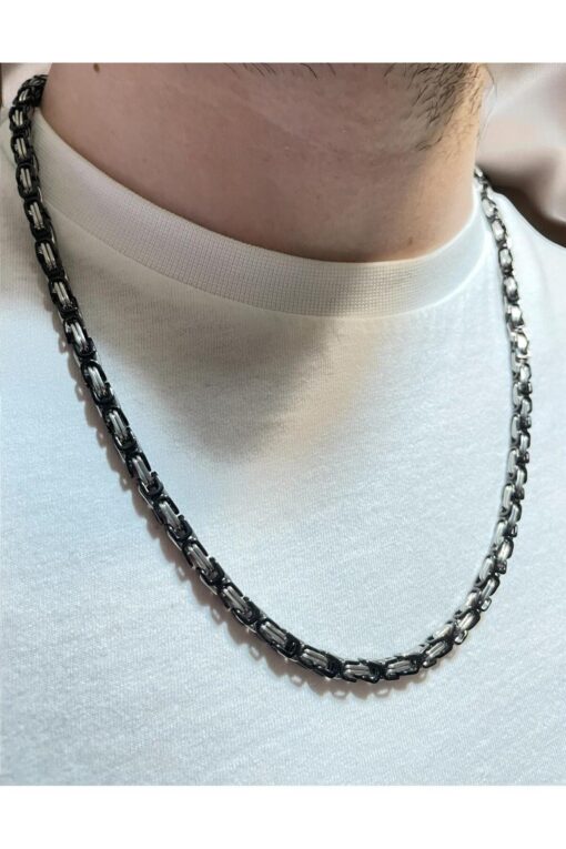 alyacs Erkek Çelik Zincir Kolye – Siyah Gümüş Renk, Şık ve Dayanıklı Aksesuar