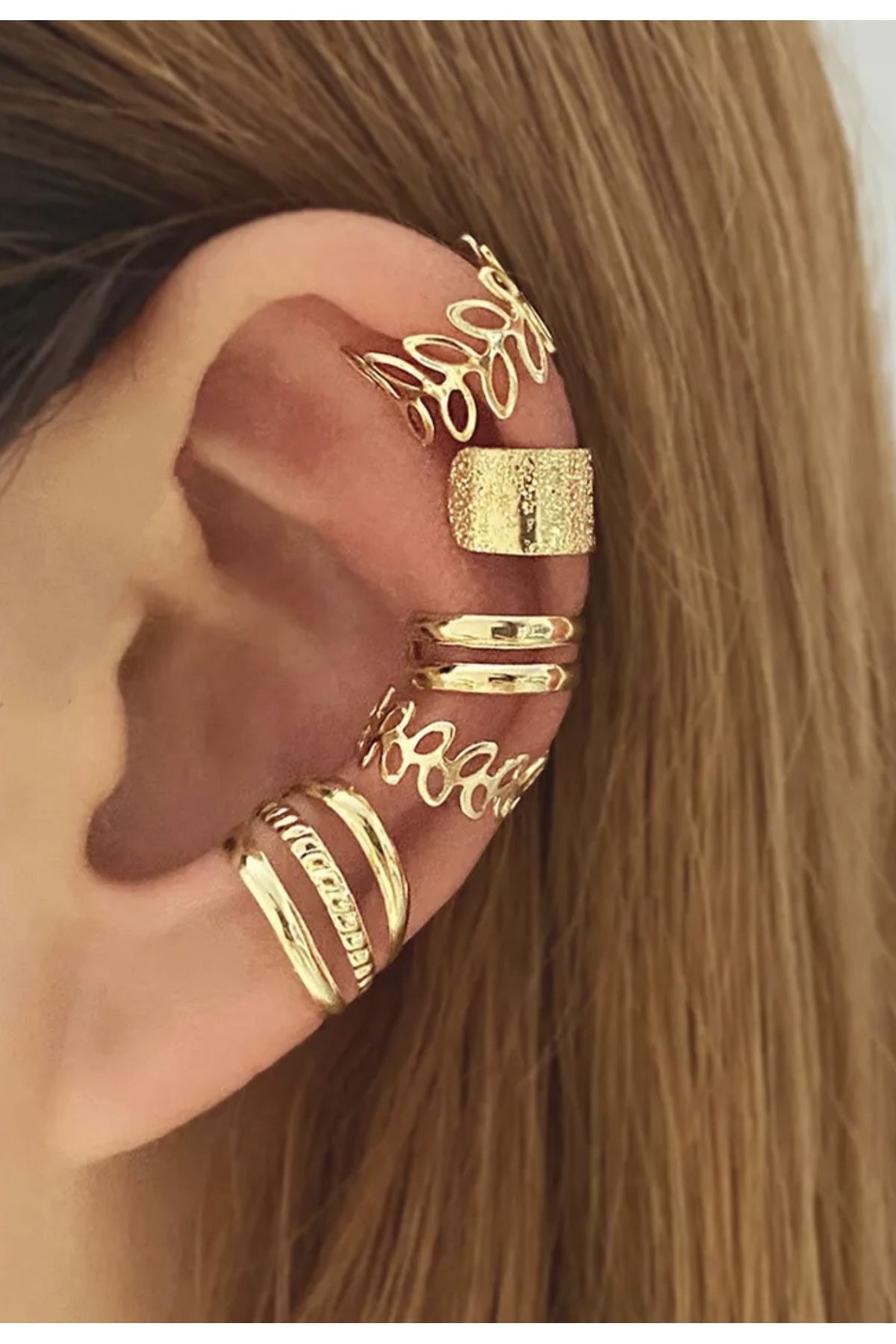 Alyeska Saç Aksesuarları 5li Gold Kıkırdak Küpe Seti - Deliksiz Tasarım ürünü ucuz fiyat, hızlı kargo imkanı ile hemen sitemizden sipariş verin.