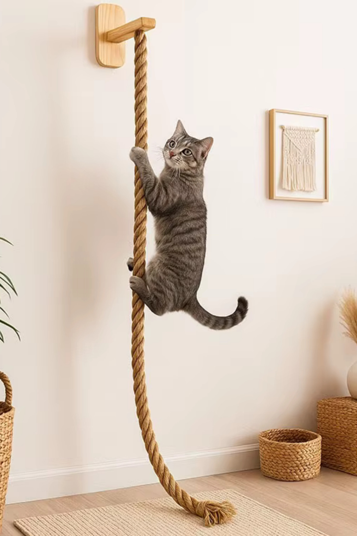 Alyones Tribe Duvara Monte Kedi Tırmanma Ağı & Tırmalama Direği – Merdivenli Platformlu