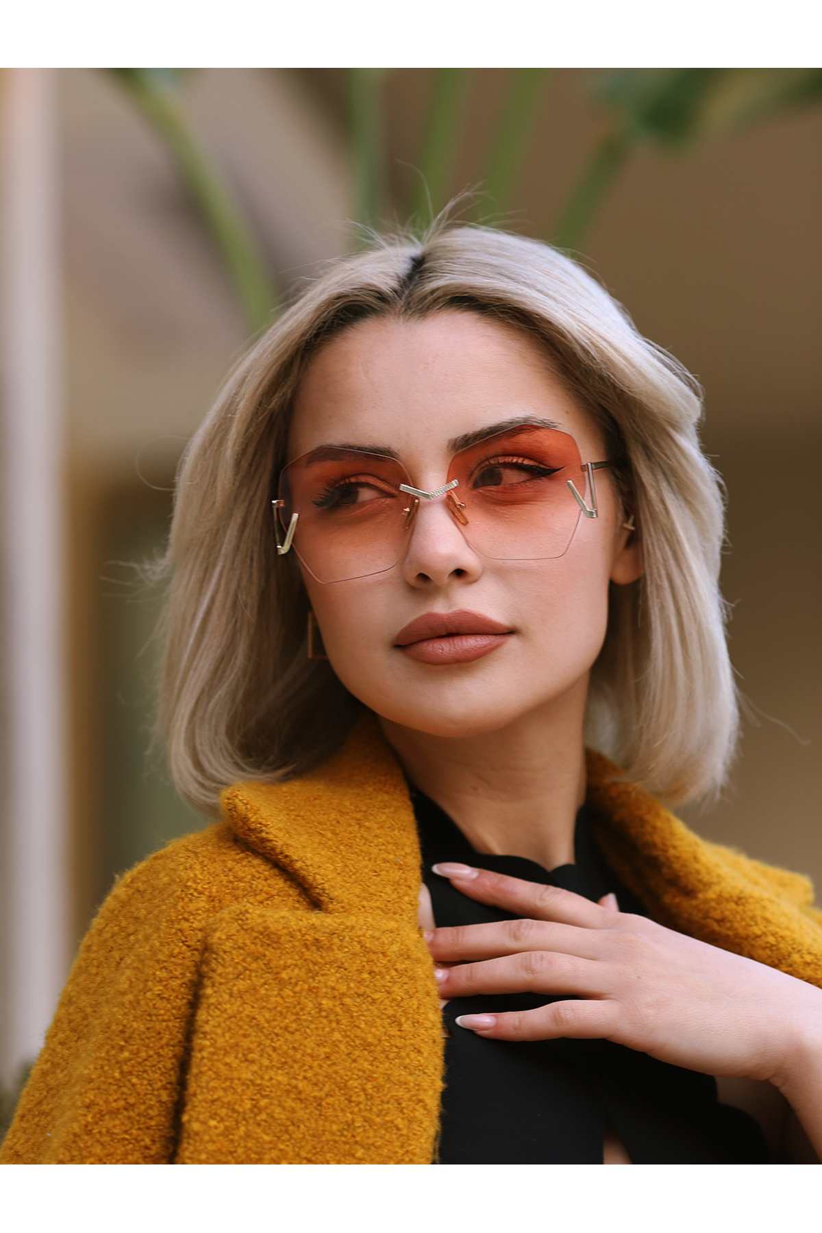 Angel Eyes Geometrik Tasarım Pembe Cam Tasarım Kadın Güneş Gözlüğü