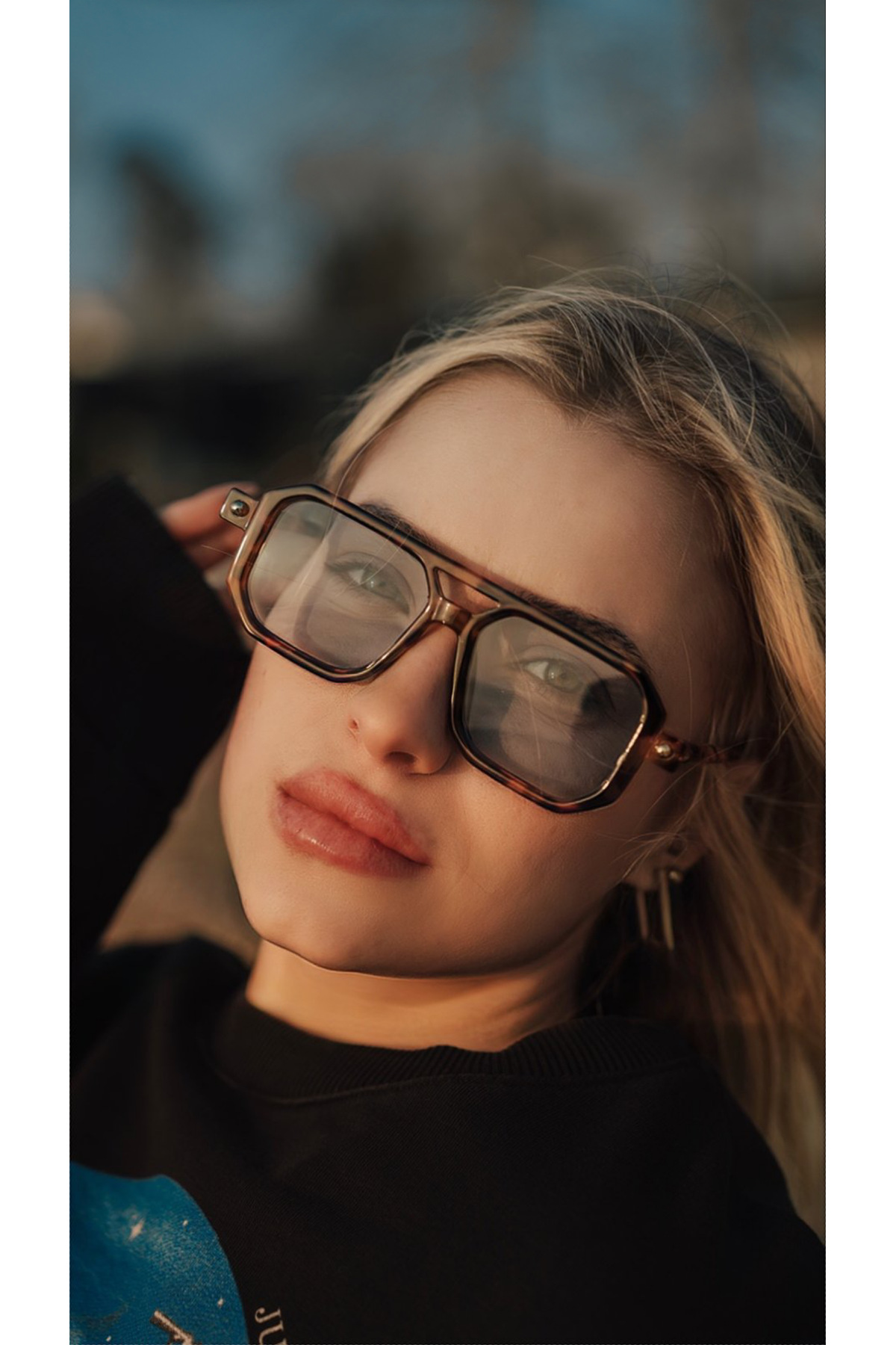 Angel Eyes Kadın Güneş Gözlüğü Dikdörtgen Leopar Köprülü Çerçeve Mavi Cam