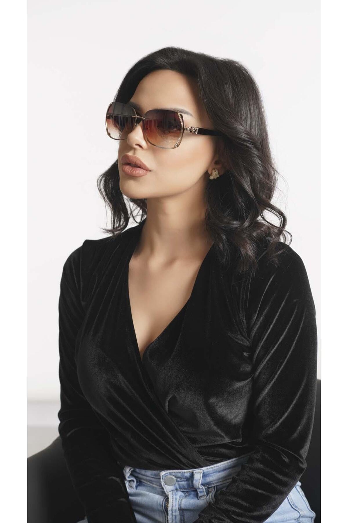 Angel Eyes Kadın Güneş Gözlüğü Geometrik Tasarım Pırlanta Işlemeli Kahverengi Çerçeve Kahverengi Cam