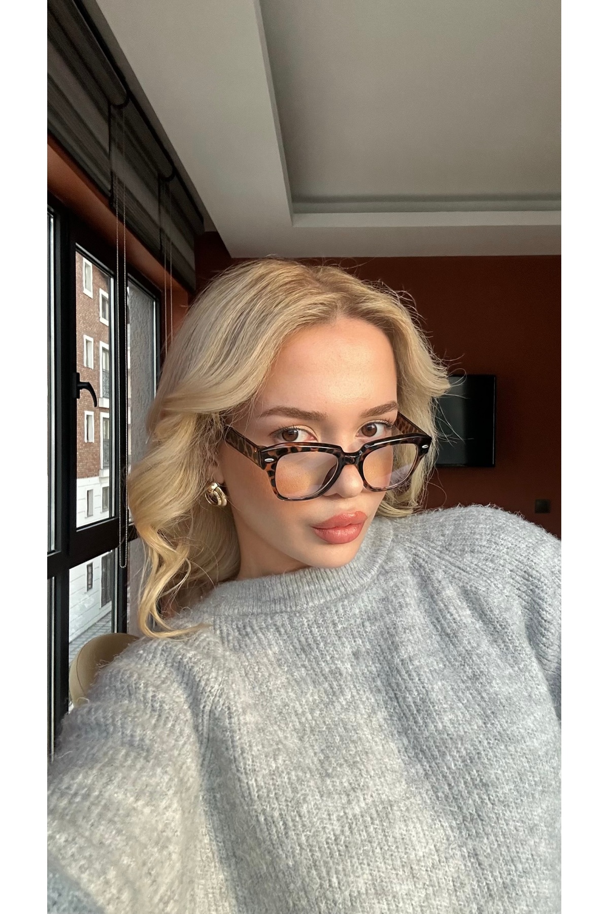 Angel Eyes Leopar Desenli Köşeli Mavi Işık Korumalı Bilgisayar ve Kitap Okuma Gözlüğü – UV400 Koruma