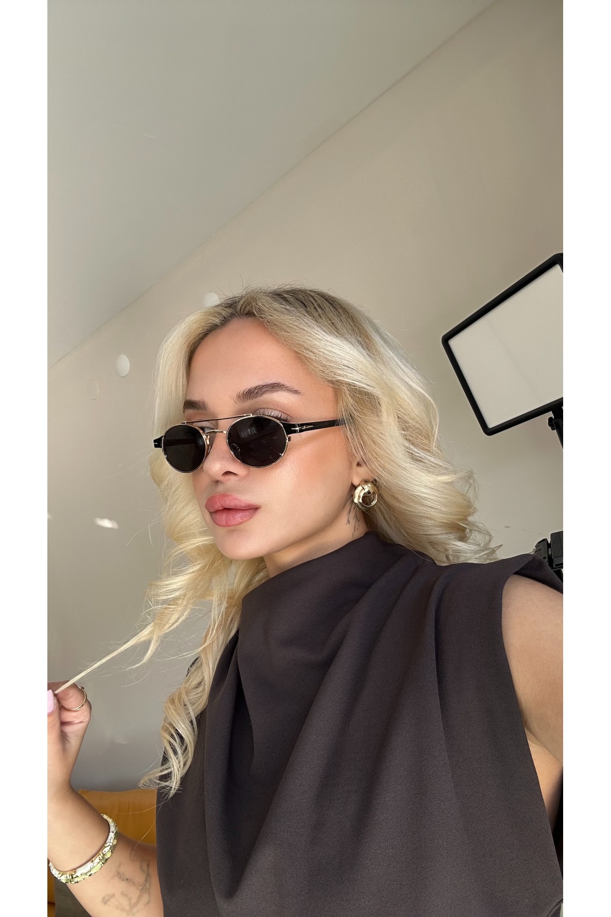 Angel Eyes Oval Tasarım Gold Çerçeve Siyah Cam Kadın&Erkek Güneş Gözlüğü Db1042/s