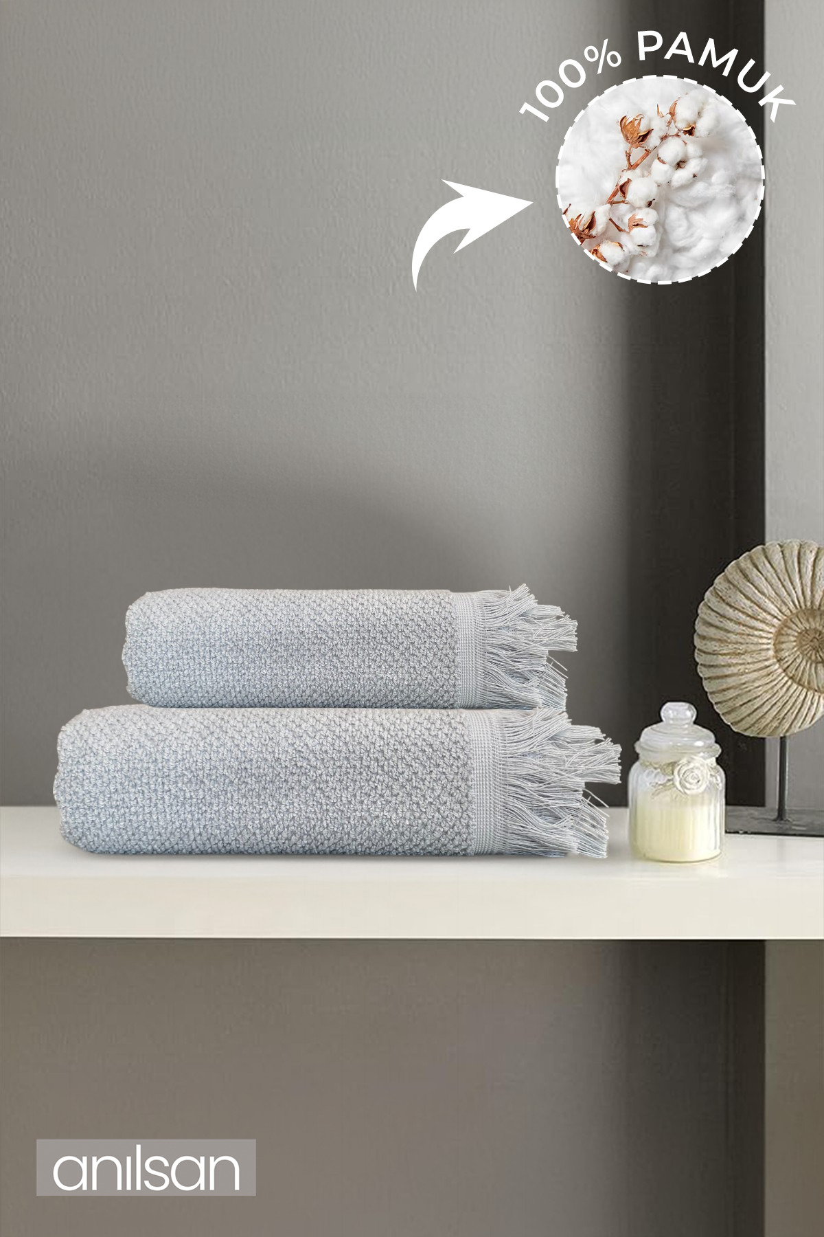 Anılsan 2’li Gri Jelena Havlu Seti %100 Pamuk – 1 Adet El Havlusu 50×90 ve 1 Adet Banyo Havlusu 70×140