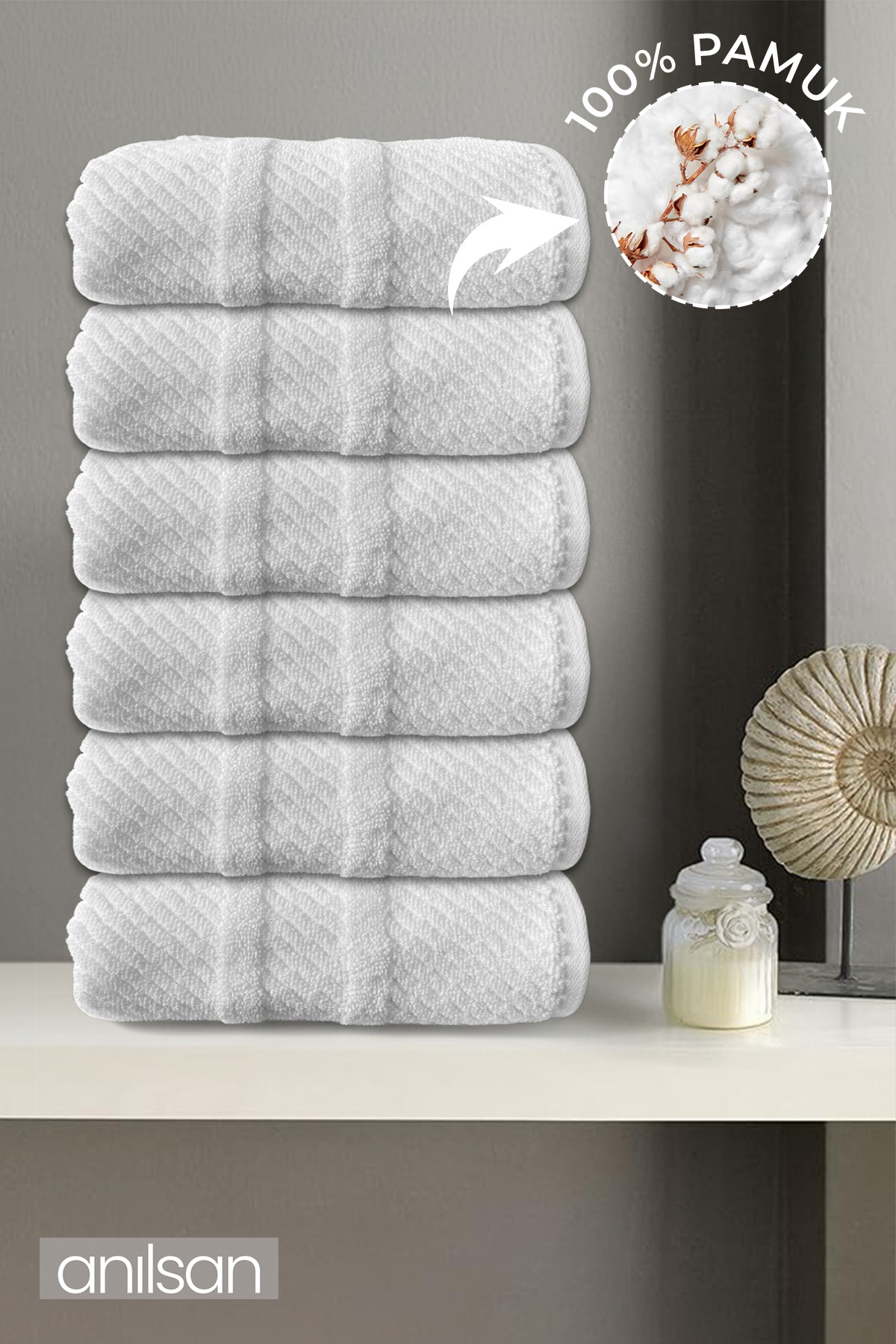 Anılsan 6’lı Beyaz Jakarlı El Havlusu – 50×90 Cm, 230 Gr, %100 Pamuk, Spa Ve Otel Havlusu