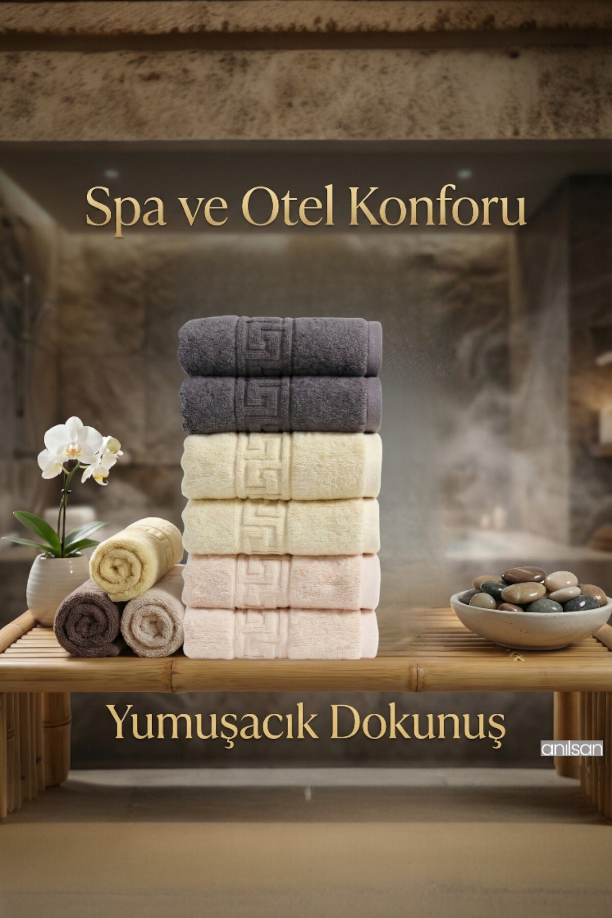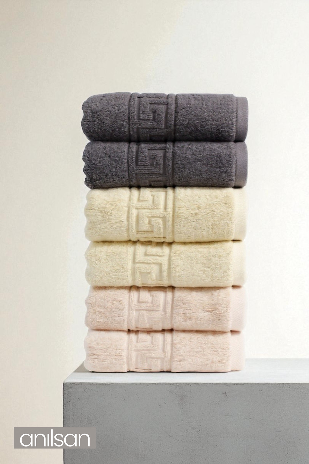 Anılsan 6’lı Trio Karışık Greek El Havlusu – 50×90 Cm, 225 Gr, %100 Pamuk, Spa Ve Otel Havlusu