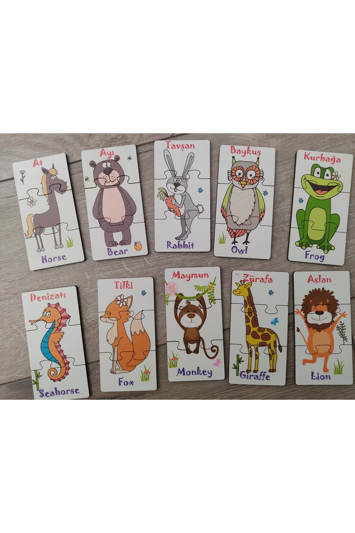 Ankebut Hayvanlar 3lü Ahşap Renkli Puzzle 10 Parça