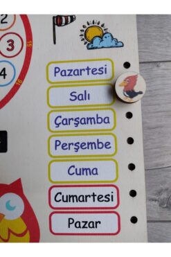 Ankebut Montessori Ahşap Saatli Eğitici Takvim Günler, Aylar, Mevsimler, Hava Durumu, Rakamlar