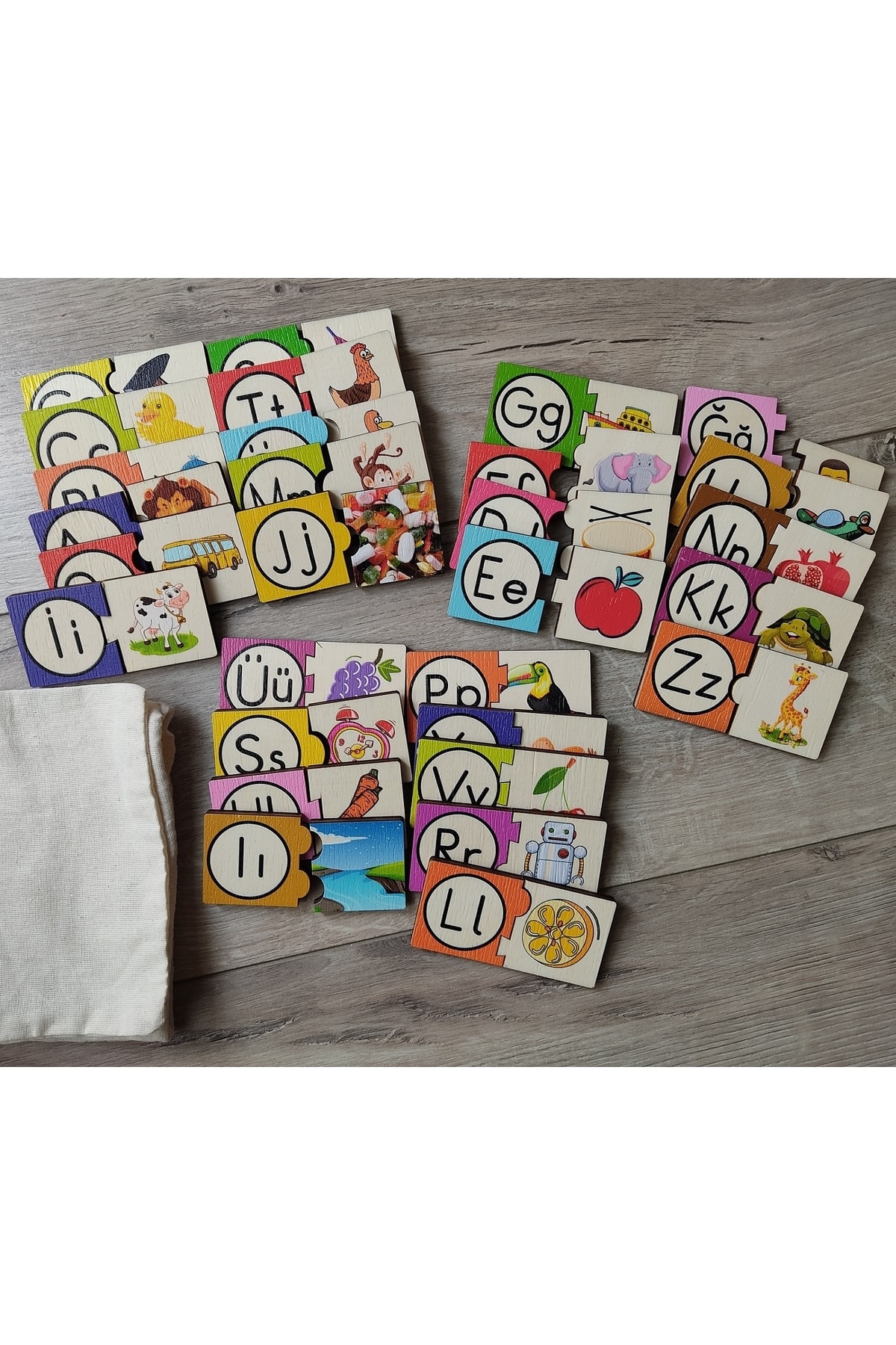 Ankebut Montessori Renkli Alfabe Eşleştirmeli Puzzle 9 Cm * 4,5 Cm