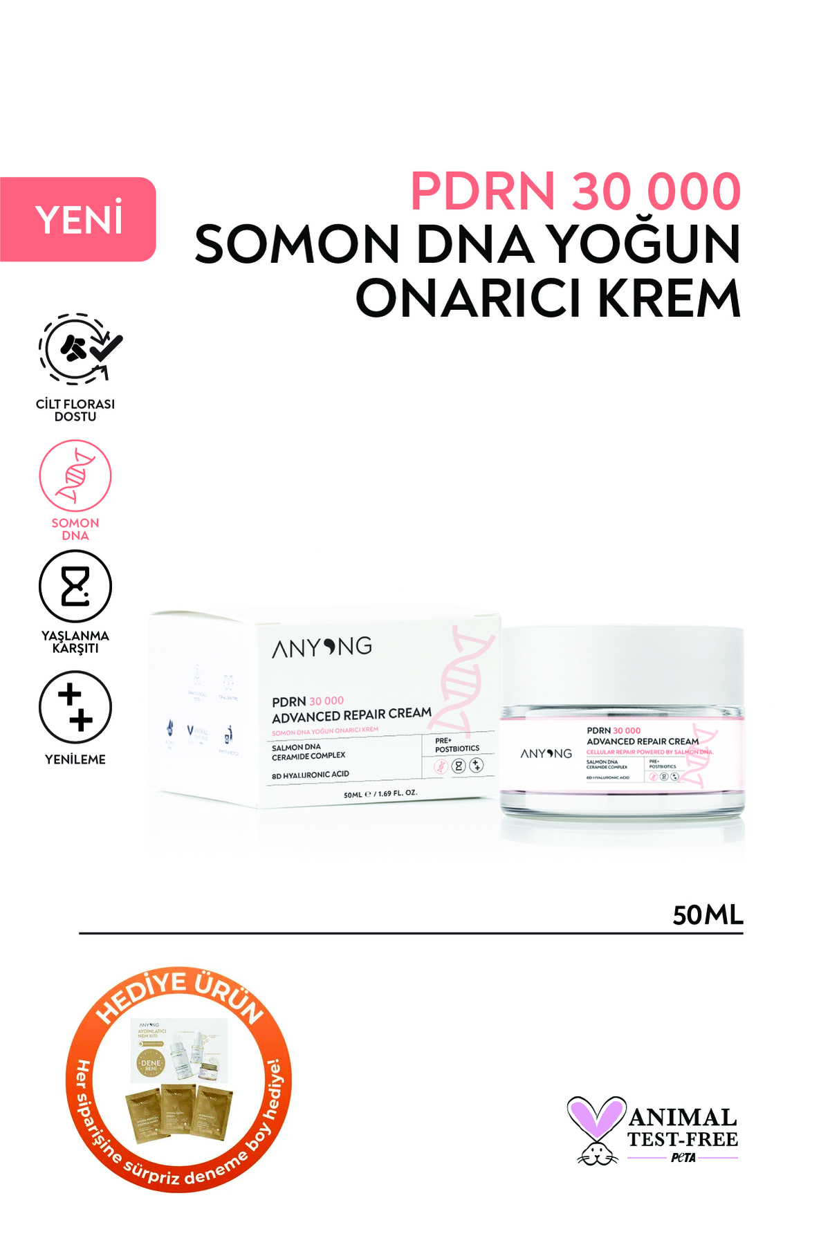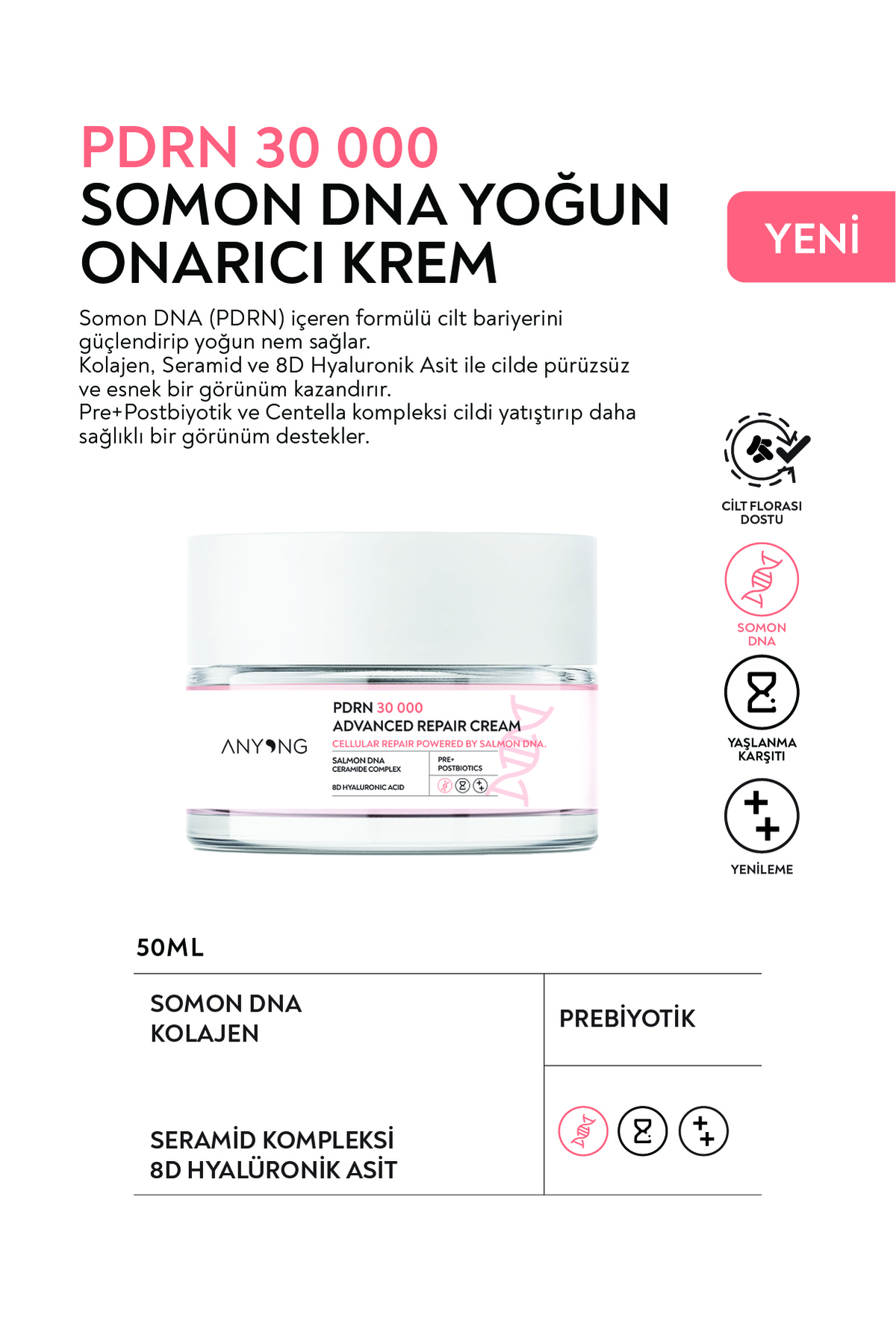 Anyong PDRN Somon DNA Krem – Onarıcı ve Nemlendirici – Kolajen ve Centella Asiatica İçerikli – 50 ml ürünü ucuz fiyat, hızlı kargo imkanı ile hemen sitemizden sipariş verin.