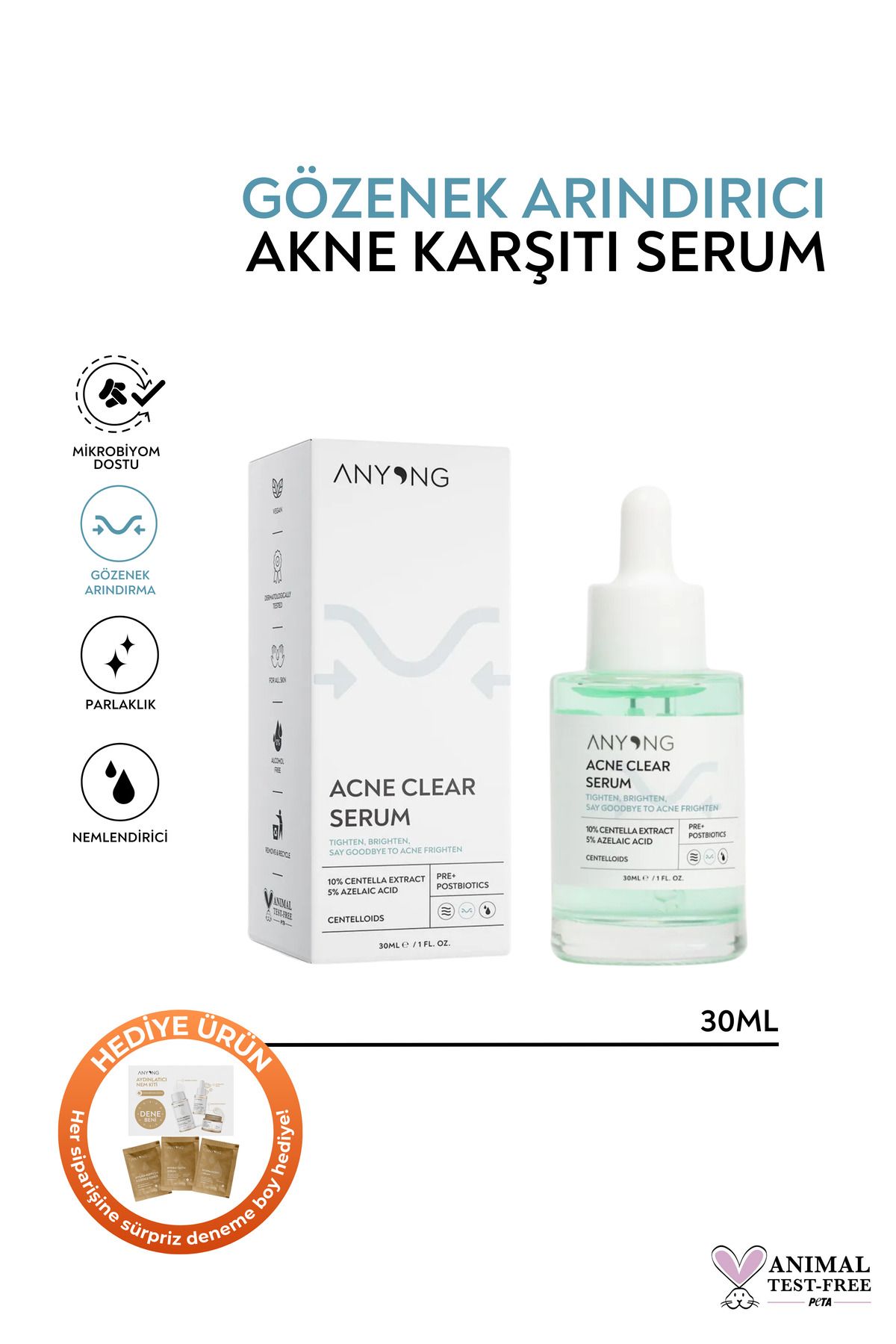 Anyong Sivilce Karşıtı, Yatıştırıcı Azelaik Asit %5 Serum 30 ml (Centella Özü & Prebiyotik)