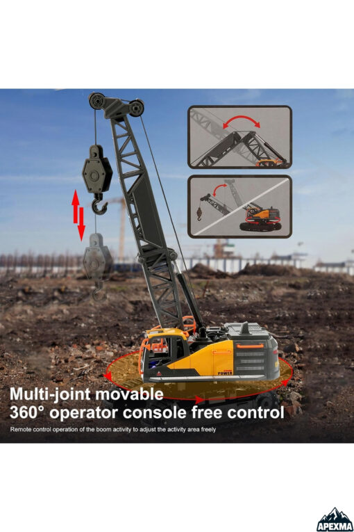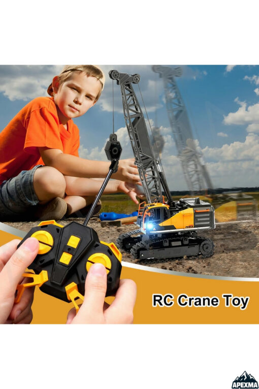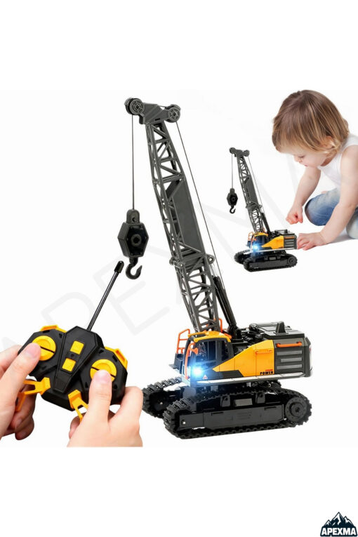 Apexma Oyuncak 40MHz Uzaktan Kumandalı Şarjlı LED Işıklı Rc İş Makinesi Paletli Vinç