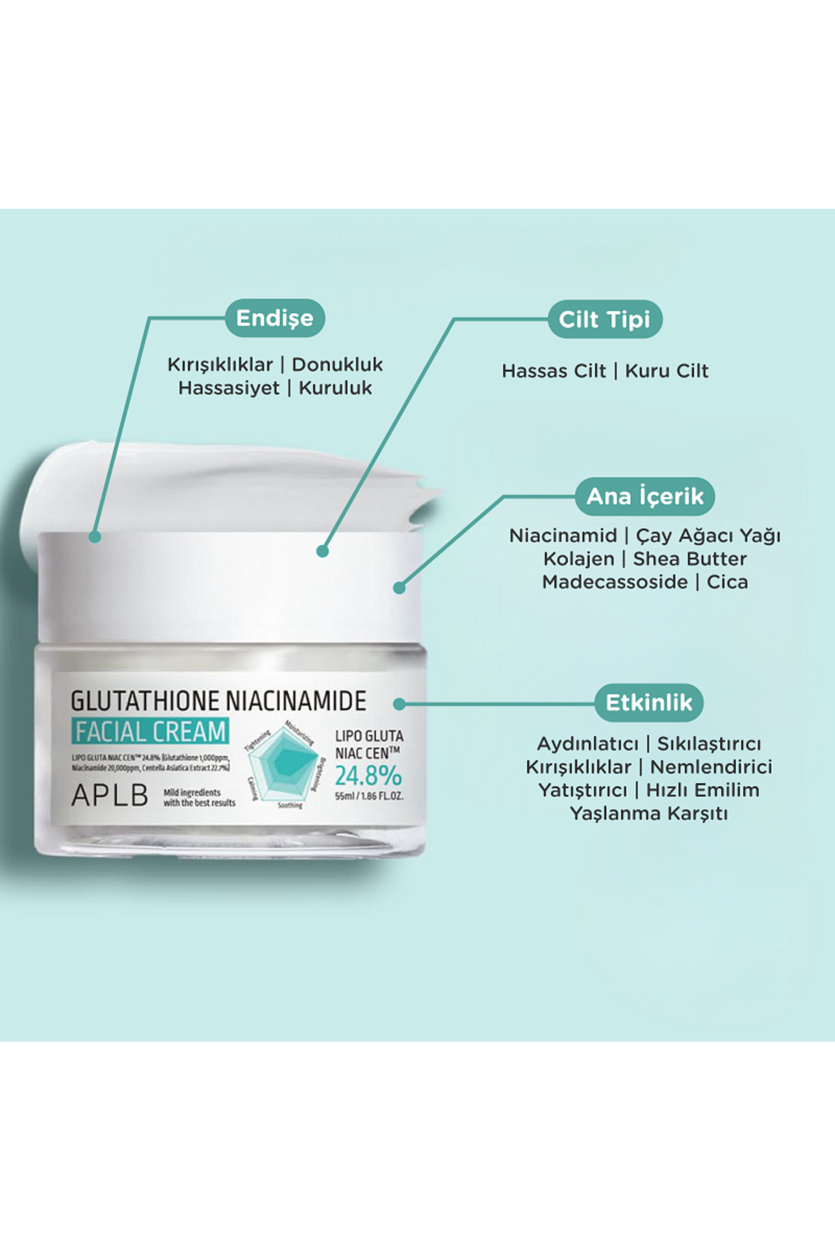 APLB Glutathione Niacinamide Facial Cream 55ml- Glutatyon ve Niasinamid İçerikli Yüz Kremi