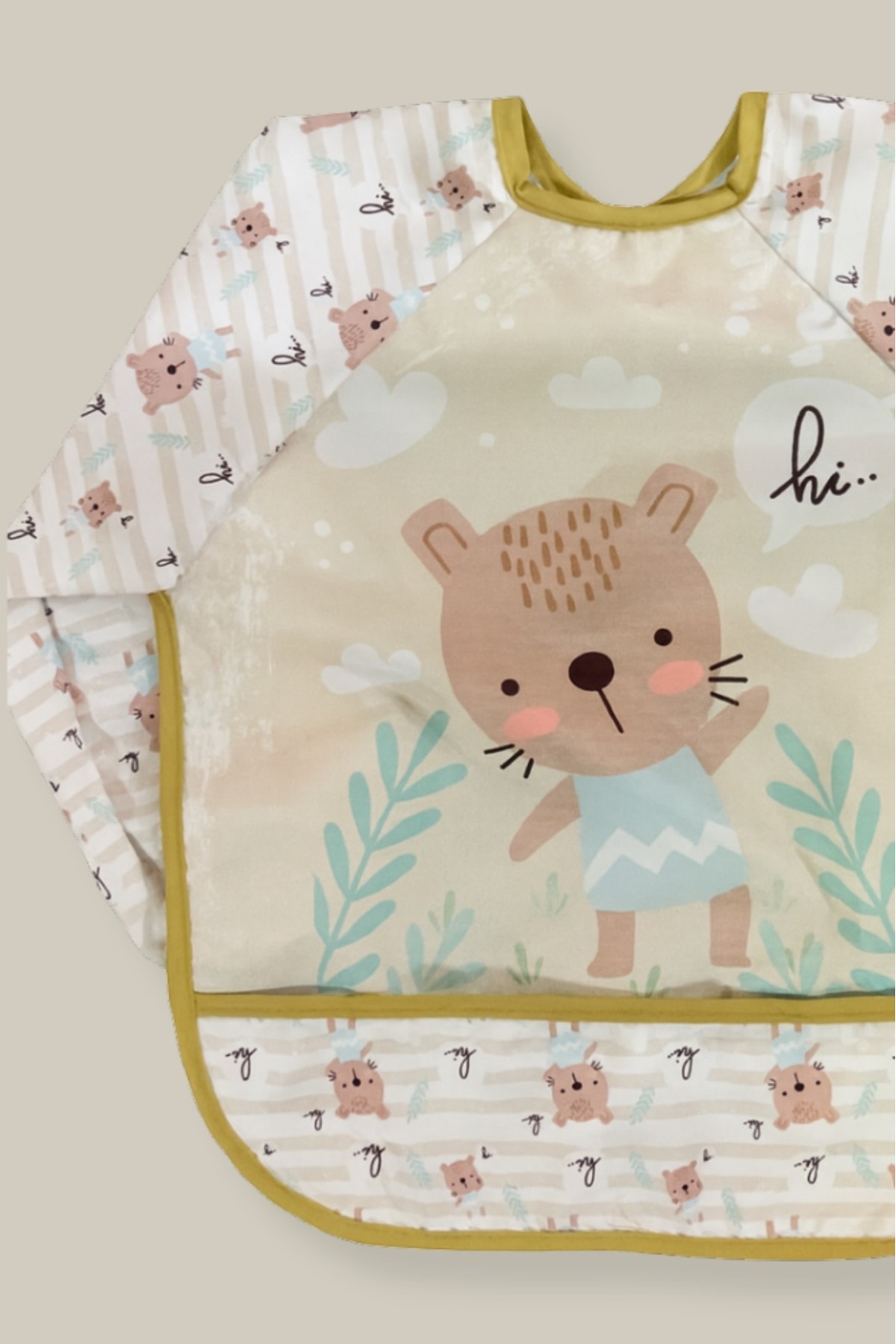 Apronica 2’Lİ Set Ayı Desen Aktivite Mama Önlüğü ve Mama Sandalyesi Örtüsü