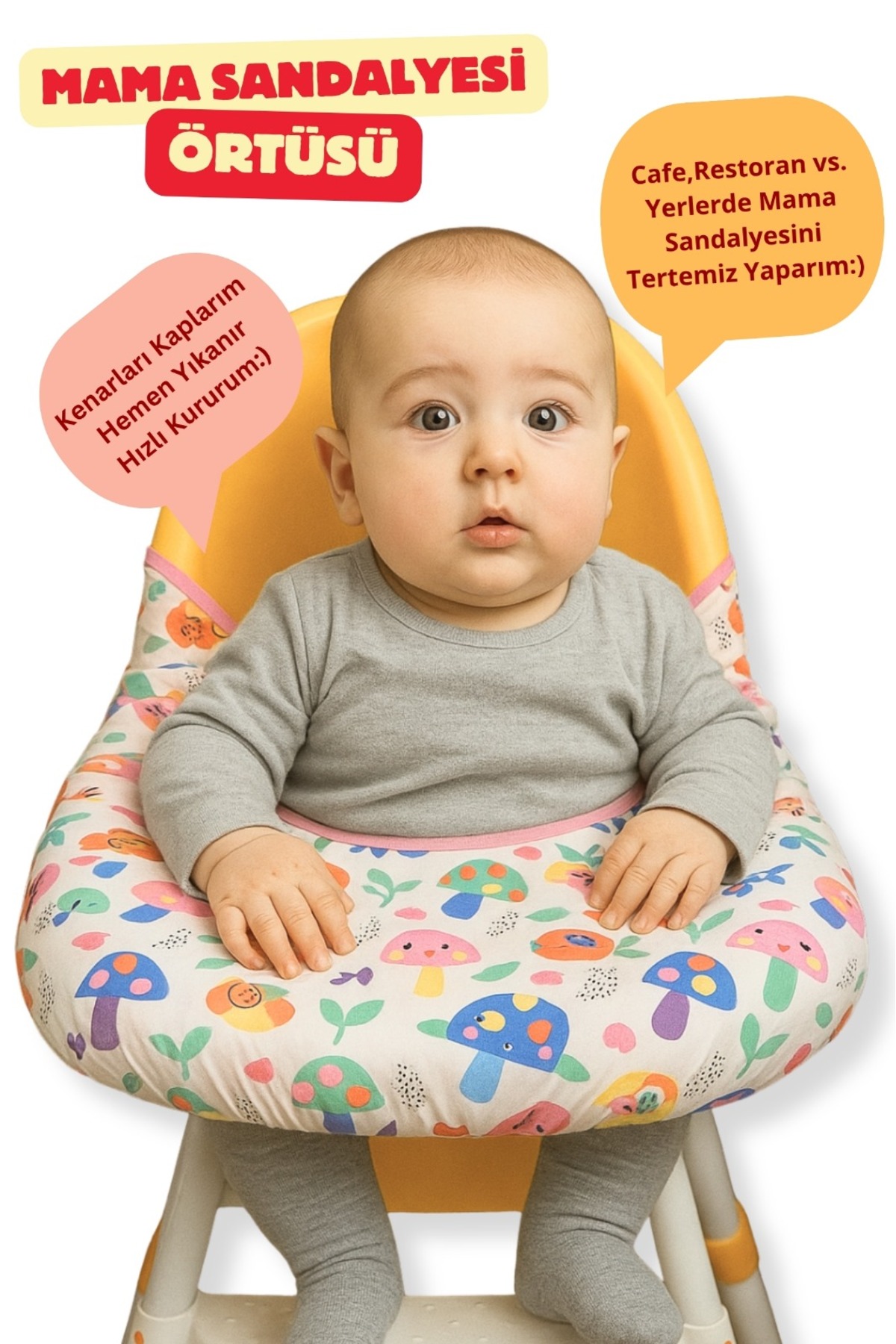 Apronica Mama Sandalyesi Örtüsü Sevimli Mantar Baskılı Desen Mama ve Aktivite Önlüğü