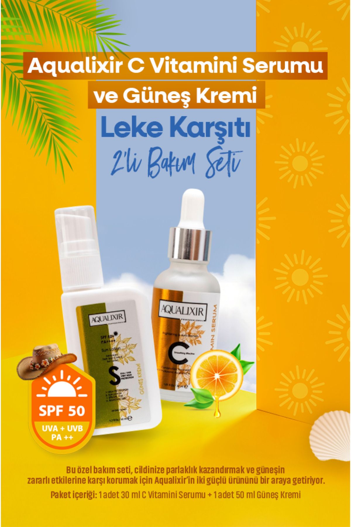 AQUALIXIR PROFESSIONAL C Vitamini Serumu Ve Güneş Kremi SPF50+ 2’li Leke Karşıtı Bakım Seti