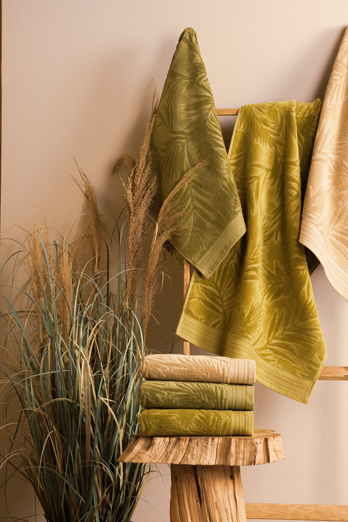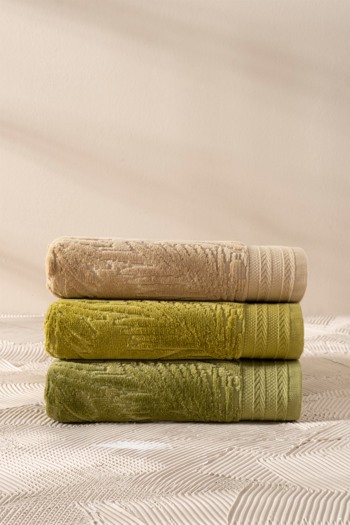 ARACHNE Palm | 3’lü | 50x90cm | 100% Pamuk | Kadife Havlu Seti | Özel Bez Çantası Hediyelidir |