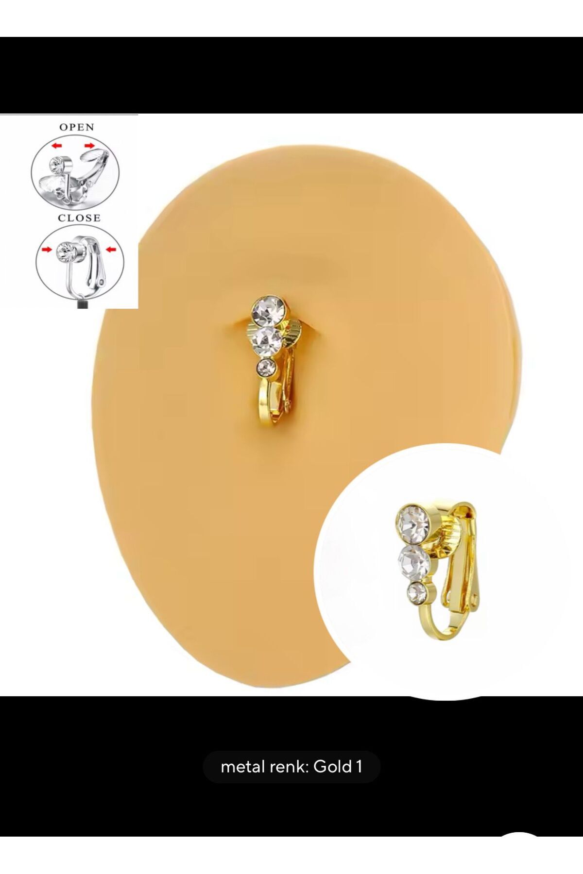 Arescollection DELİK GEREKTİRMEYEN ( DELİKSİZ) TAŞLI ZARİF SADE SALLANTISIZ KLİPSLİ FAKE GÖBEK PİERCİNGİ