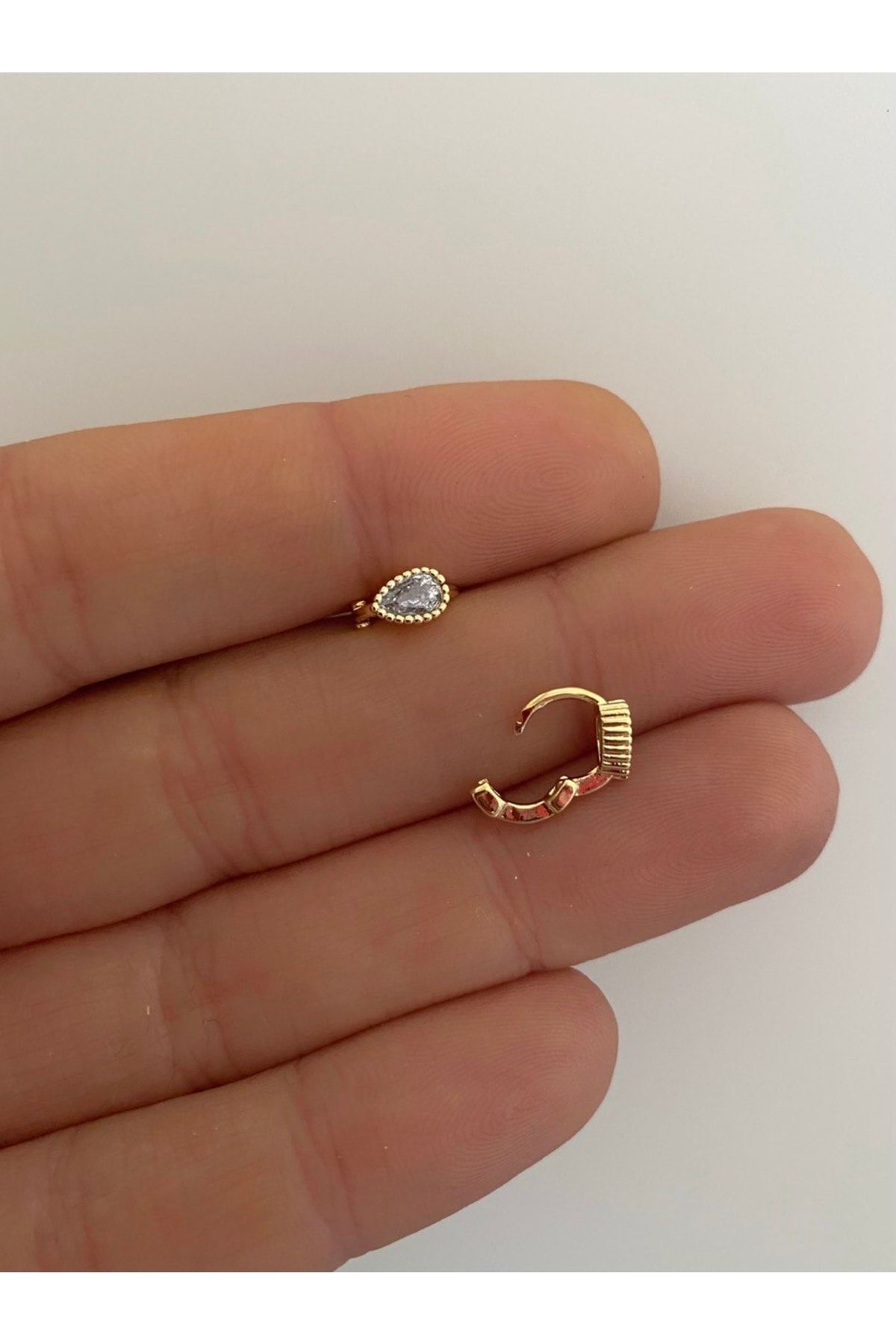 Arescollection Zirkon Taşlı Tragus Rook Lobe Uyumlu Damla Model Mini Halka Piercing