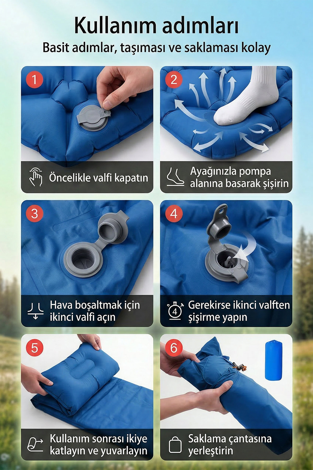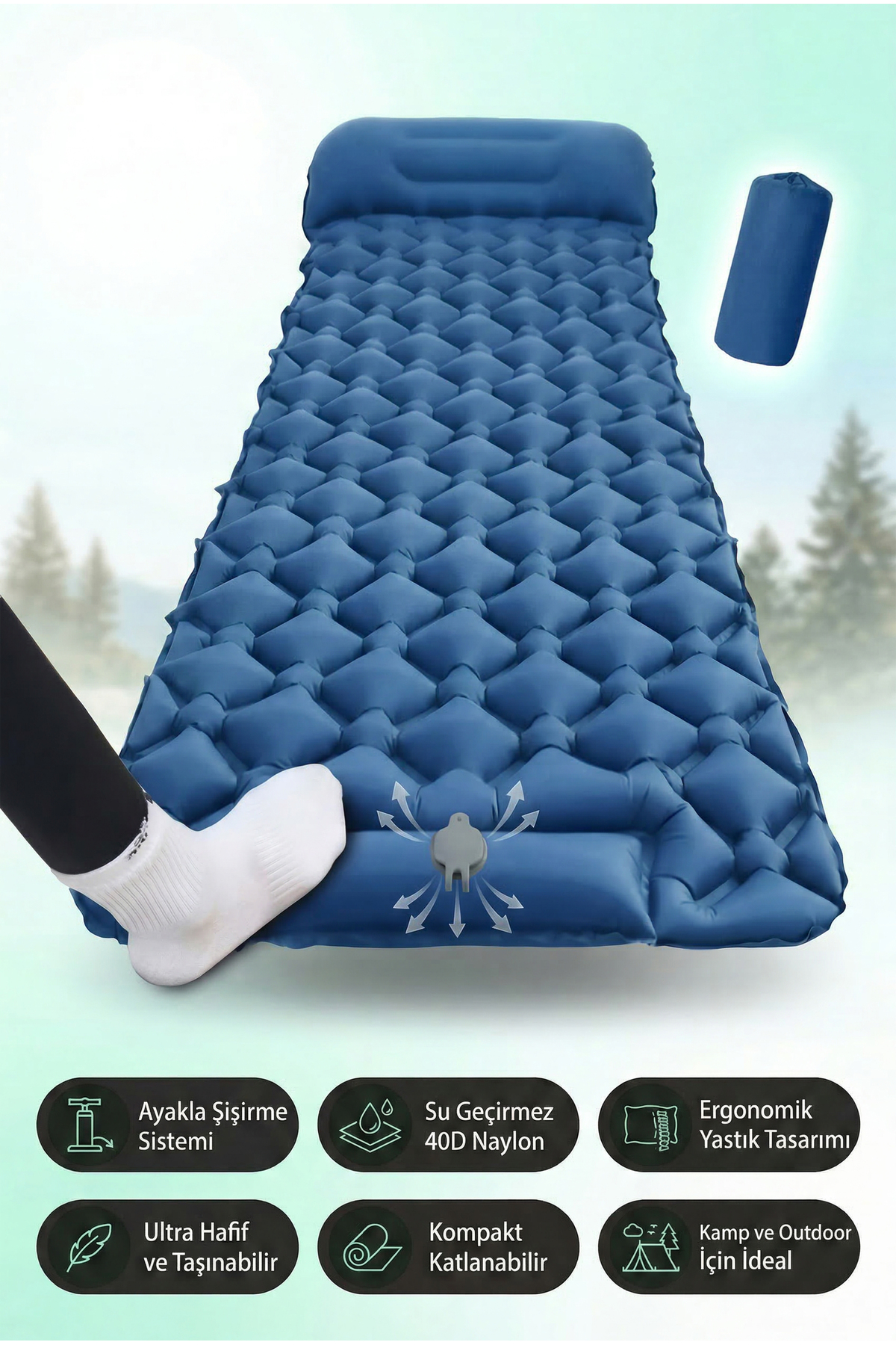 Arfseb Ayakla Şişirilen Kendinden Yastıklı Katlanabilir Taşınabilir Outdoor Şişme Kamp Yatağı- Mavi ürünü ucuz fiyat, hızlı kargo imkanı ile hemen sitemizden sipariş verin.