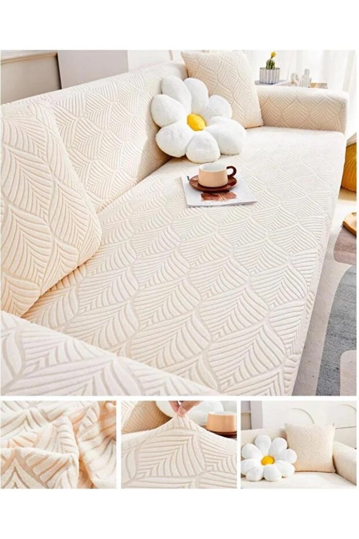 ARİFE HOME Yaprak desen 3 Kişilik Krem Lastikli Kanepe Örtüsü | Lastikli Koltuk Örtüsü | koltuk kılıfı ürünü ucuz fiyat, hızlı kargo imkanı ile hemen sitemizden sipariş verin.