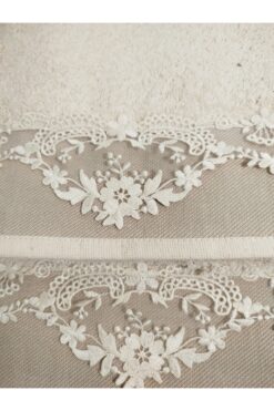 Arliva Home Naturel Bukle Nakışlı Dantelli Kutulu 2 li Banyo Seti 50×85 cm Yüz Havlusu 90×150 cm Boy Havlusu