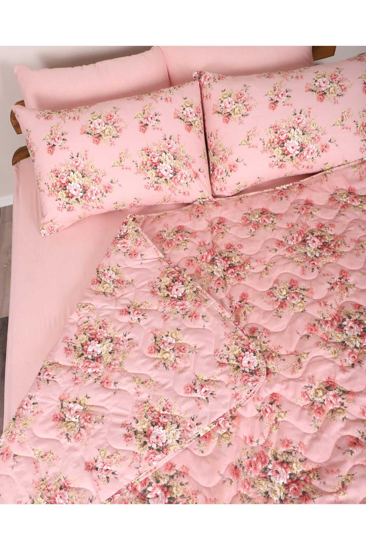 Elart Alice Kombin Set Yatak Örtüsü Nevresim Takımı Battaniye Çeyiz Seti (240×260 cm) Gülkurusu