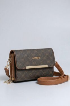 Armine Kadın Kahverengi Noktalı Orta Boy Çapraz Askılı El & Omuz Çantası 381