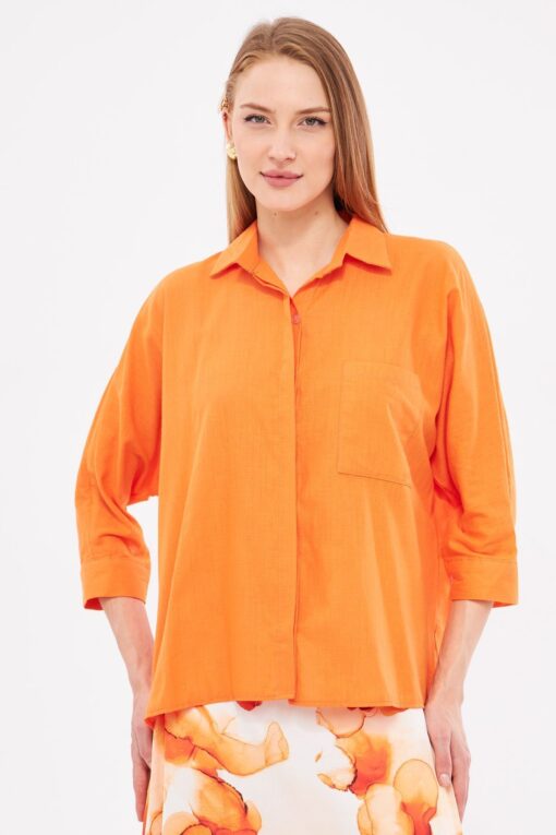 Ana Sayfa » kozmetikara.com » Giyim » Üst Giyim » Gömlek » armonika Kadın Turuncu Cepli Salaş Keten Gömlek ARM-21Y001035
