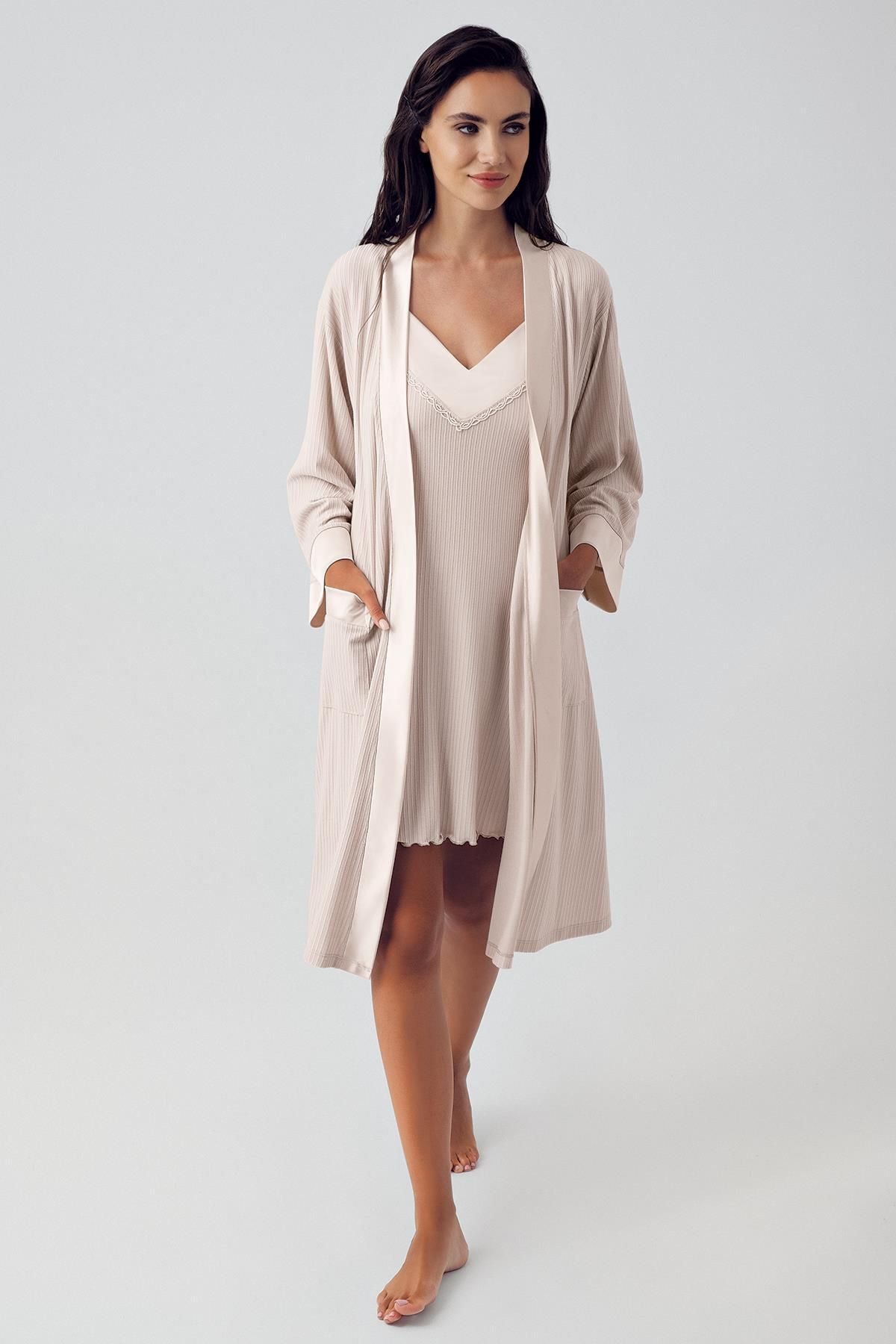 Artış Kadın Esnek Viskon Kısa Askılı Sabahlık Gecelik Takım