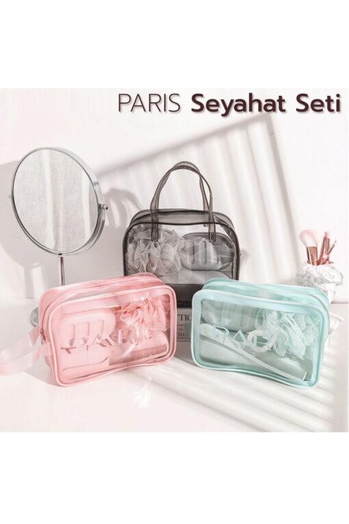 ARVALE PARIS Seyahat Seti | Duş Lifi, Sabunluk, Tarak & Makyaj Kutusu – Şeffaf Taşınabilir Çanta en ucuz fiyata kozmetikara.com sitemizden sipariş verebilirsiniz.