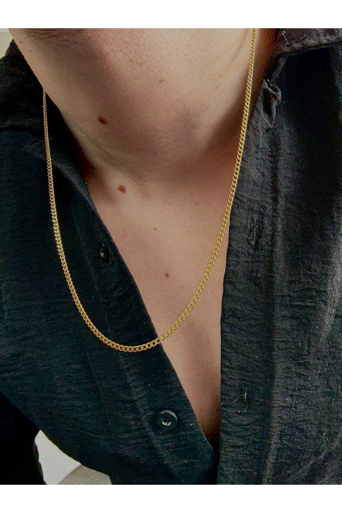 Arvens Erkek Gold Paslanmaz Çelik Zincir Kolye Renk Atmaz Solma Yapmaz Unısex Solmaz