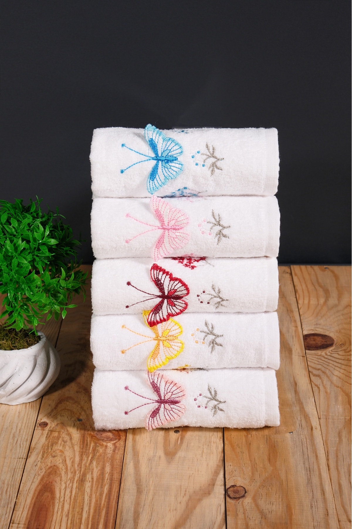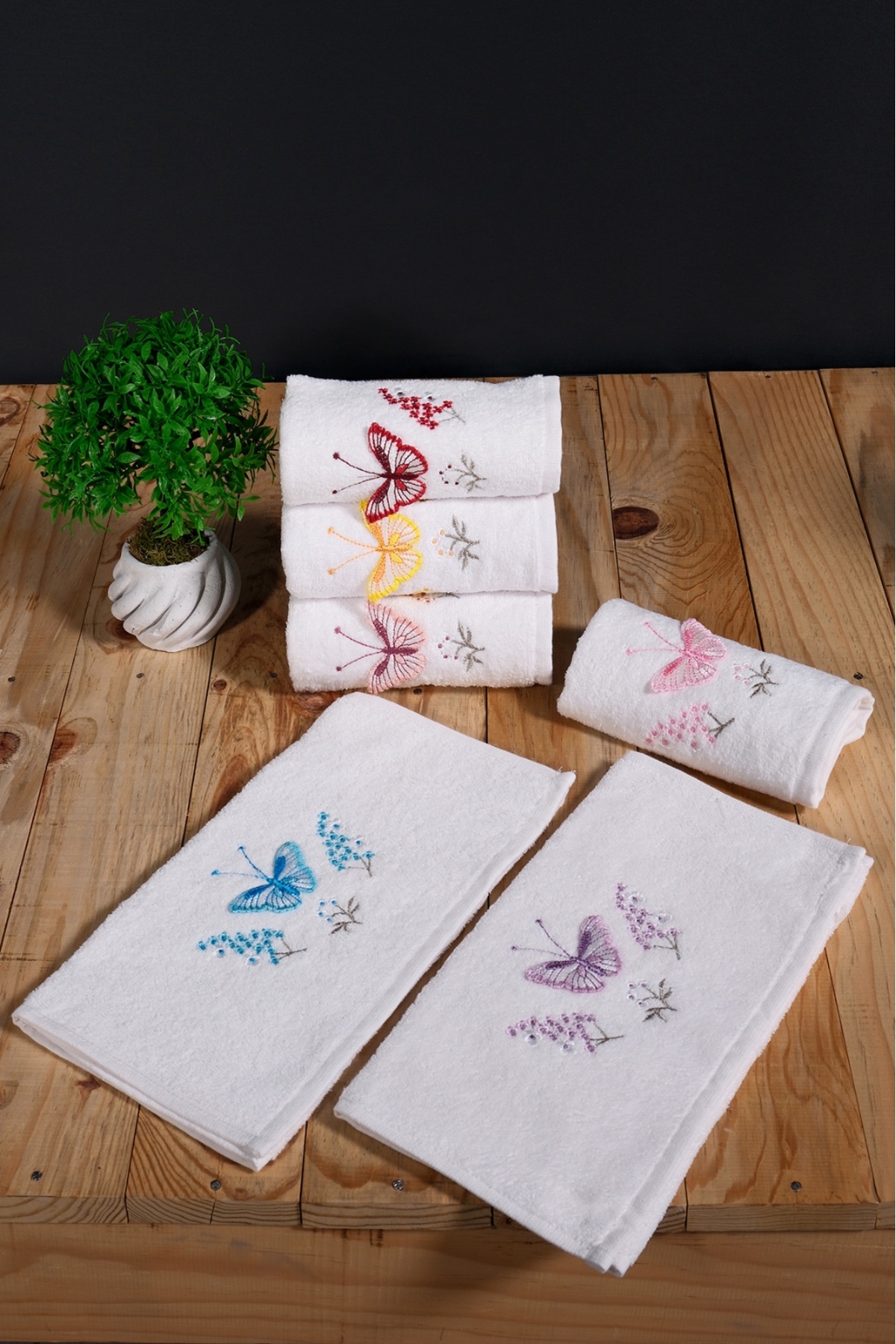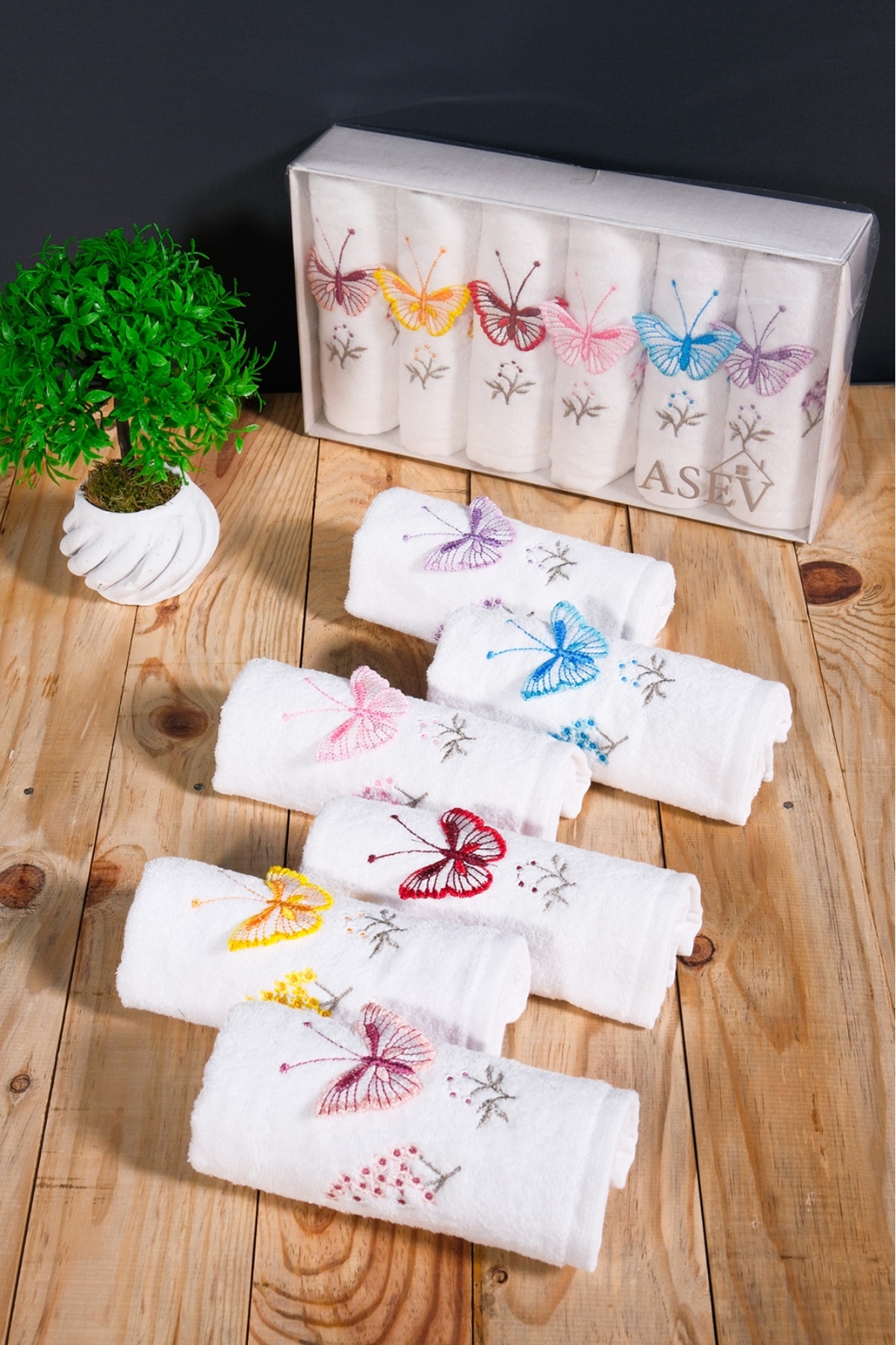 asev tekstil 30×50 Cm Güpür Kelebek İşlemeli 6lı Mutfak Havlusu | El Havlusu | Yüz Havlusu Seti