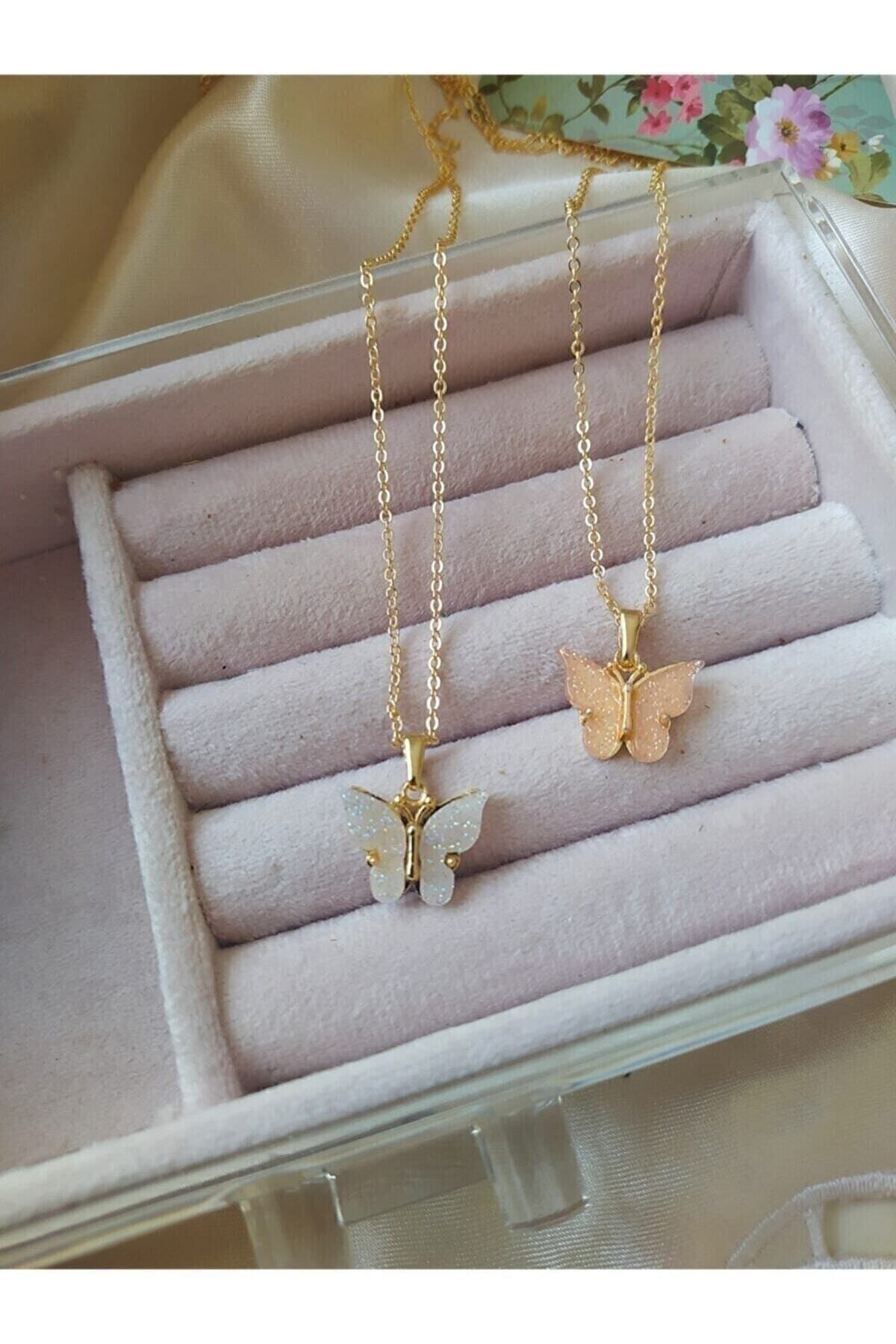 Asia Chic Pembe Ve Beyaz Kelebek Kolye Seti