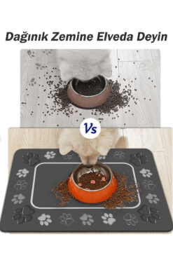 AsMat Paw Evcil Hayvan Besleme Matı Pati Figürlü Kaymaz KolayTemizlenir Su İtici Kedi Köpek Mama Mat/Paspası