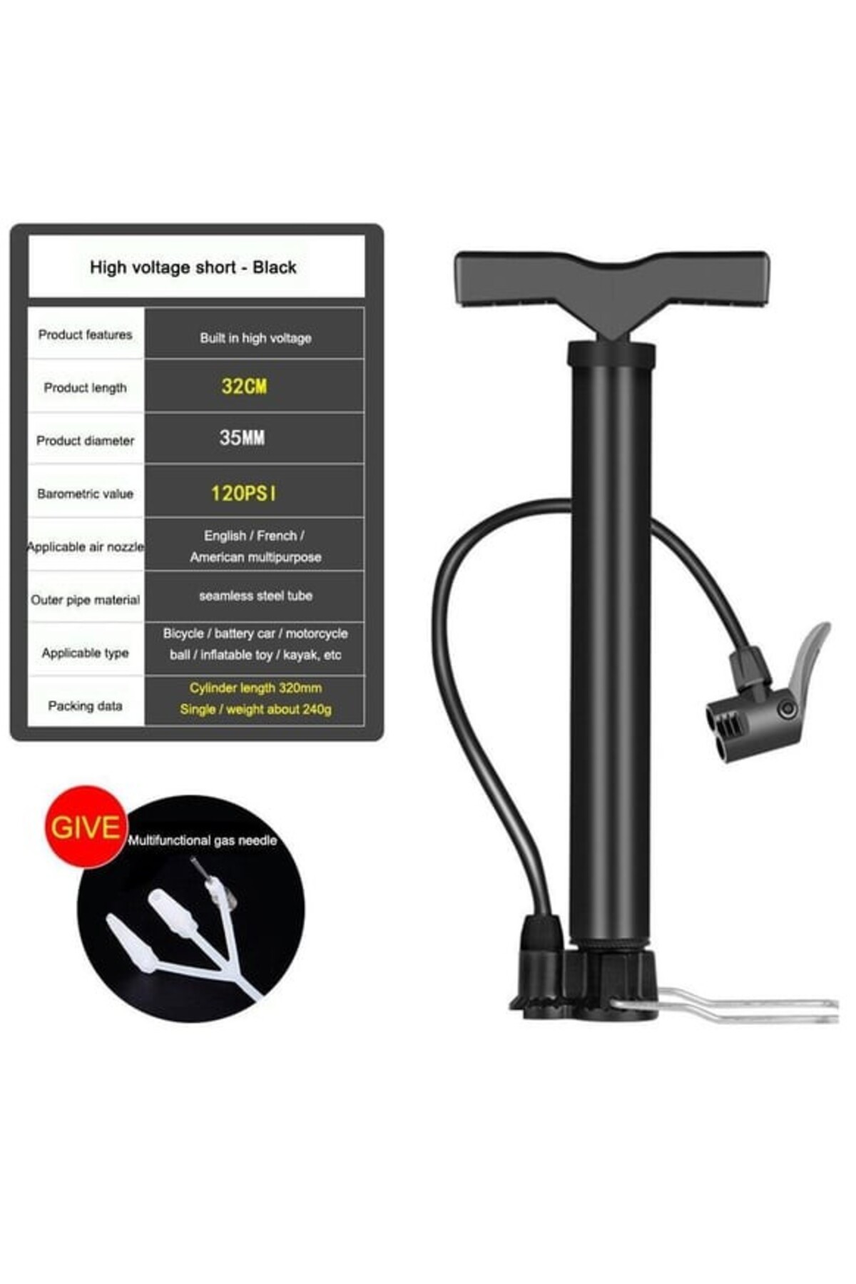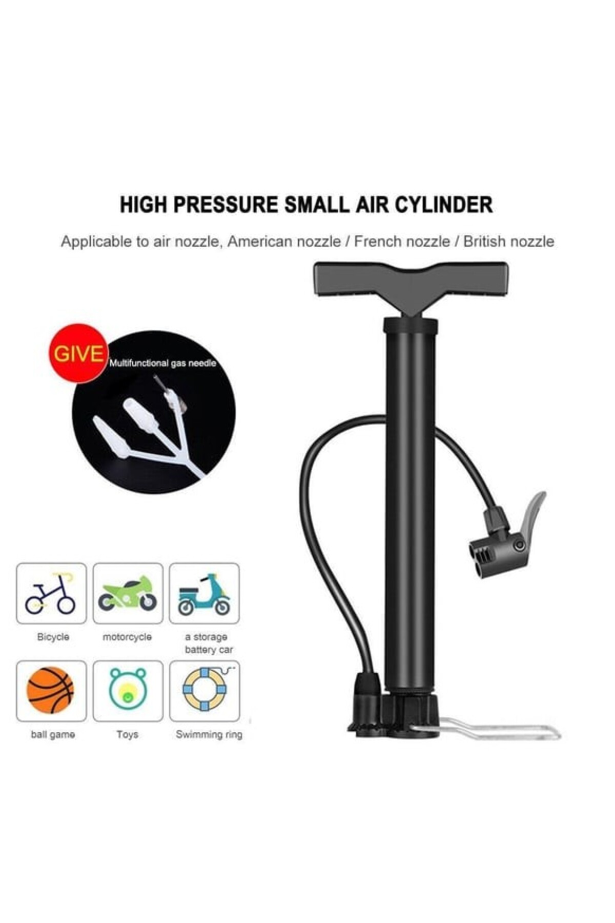 Asroya Bisiklet Pompası Bisiklet El Hava Pompası Lastik Pompa Motosiklet Araba ATV Çift Başlıklı +Top