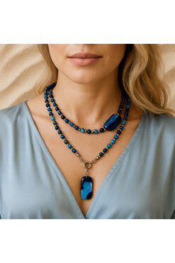 Asteria Elite Mavi Akik Iki Sıralı Uzun Denge, Güç Ve Nazardan Koruma Kolyesi