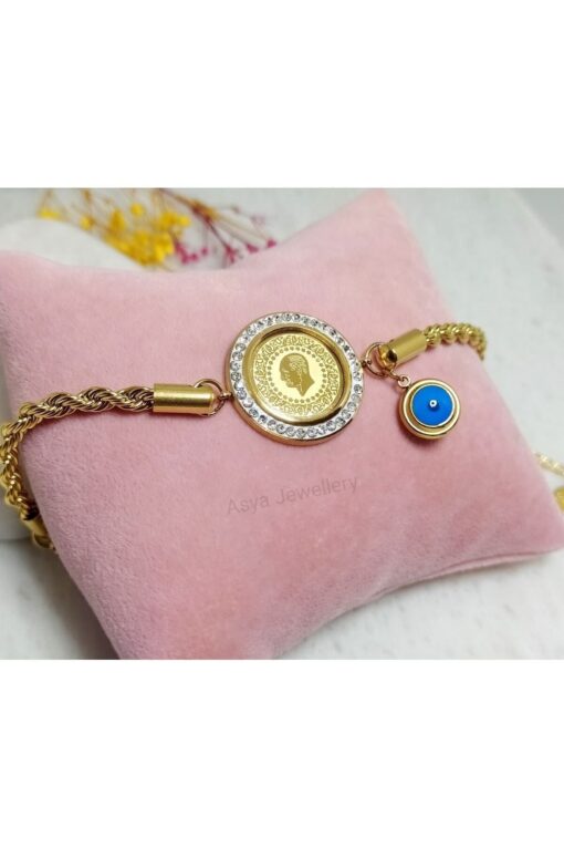 Asya Jewellery Birebir Kuyumcu Model Kuyumcu Işçiliğiyle Çeyrekli Çelik Bileklik Çeyreklik Lira Bileklik