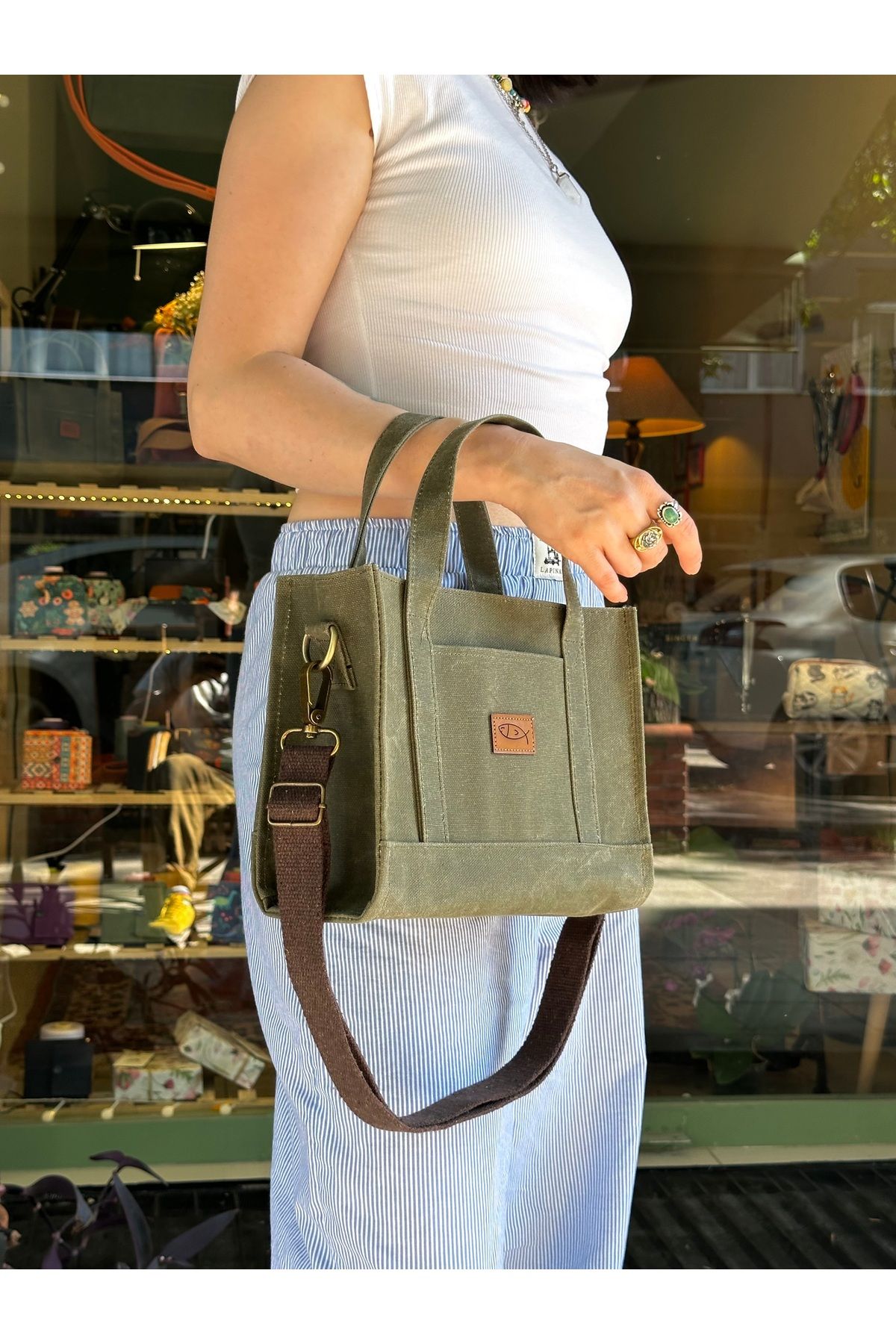 Atelier Lapina çantamı çok sevdim! Haki ve avokado renklerinin birleşimi harika, tam istediğim gibi şık ve doğal duruyor. Mumlu kanvas kumaşın kalitesi de çok iyi, sağlam ve kullanışlı. Orta boy olması da günlük kullanım için ideal. İçine telefonum, cüzdanım ve diğer küçük eşyalarımı rahatlıkla sığdırabiliyorum. Paketleme özenliydi ve hızlı bir şekilde elime ulaştı. Kesinlikle tavsiye ederim!