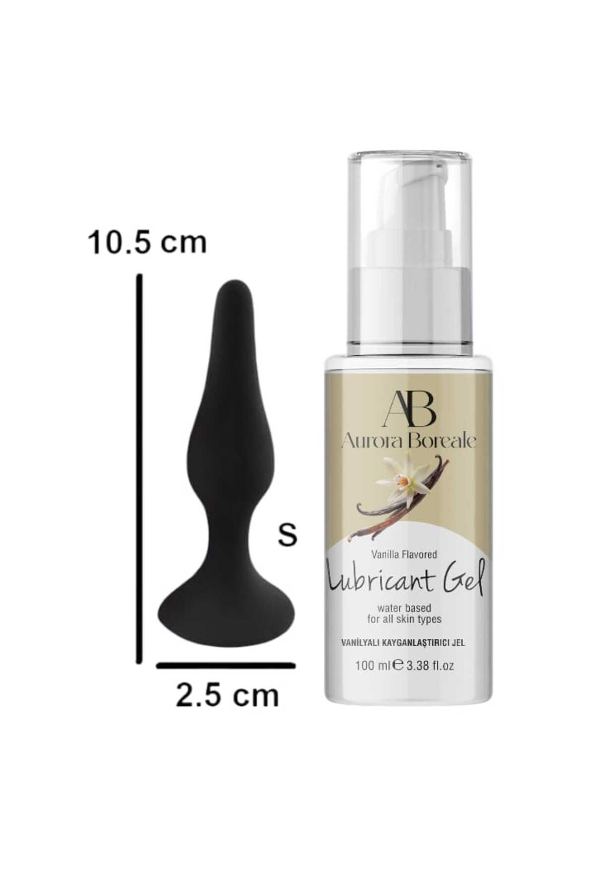 AuroraBoreale Vanilyalı Kayganlaştırıcı Jel 100 ML S Beden Siyah Renk Plug Hediyeli Lubricant