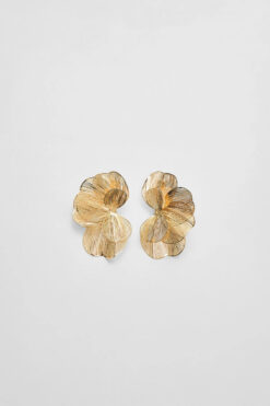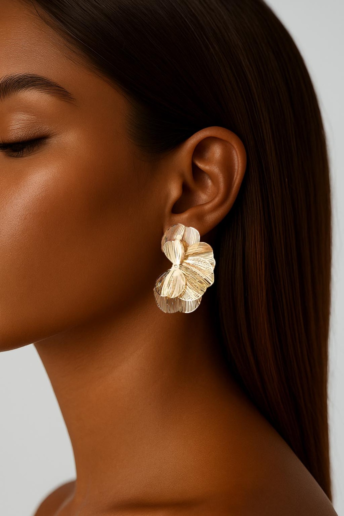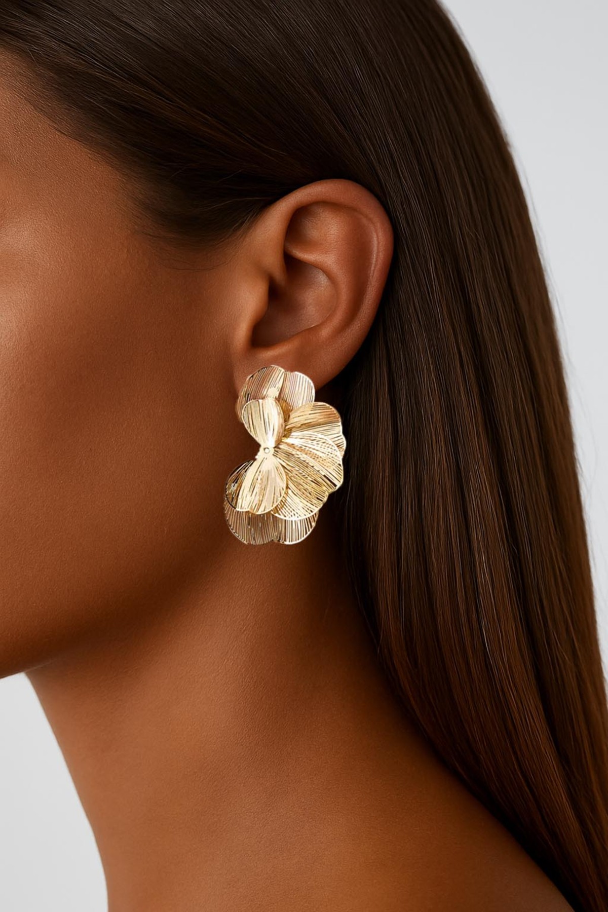 AURRARİ Çiçek Yapraklı Ve Dokulu Çelik Küpe Altın Kaplama