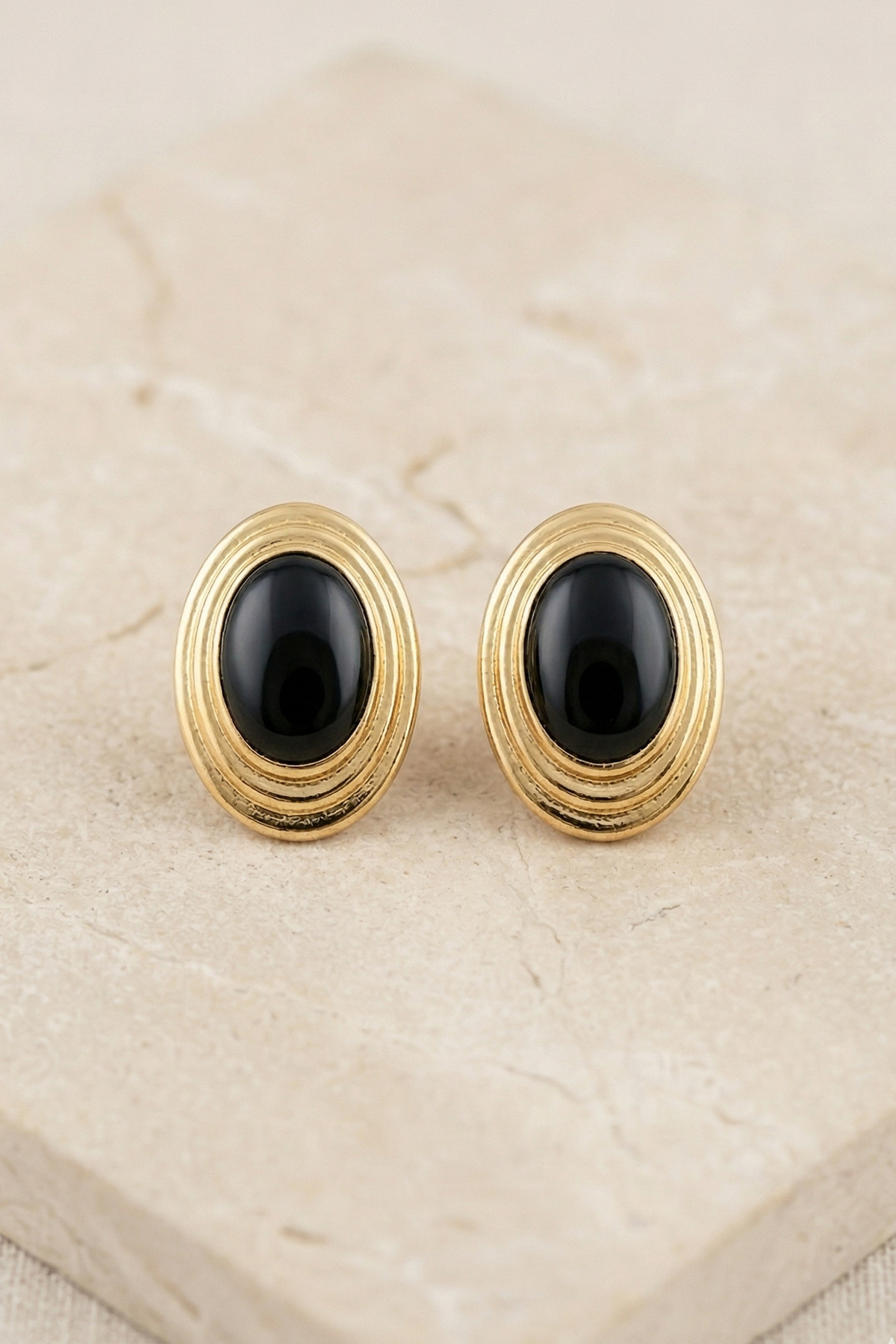 AURRARİ Gold Siyah Sedefli Silindir Küpe