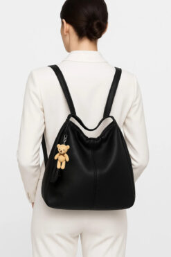 Av A Dos Büyük Boy Kadın Suni Deri Omuz Askılı Ayıcıklı Omuz ve Sırt çantası Olabilen Omuz Çantası
