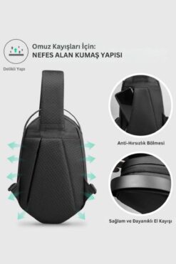 Gizli USB Bağlantı Noktası (Powerbank ve USB Kablo Gerekir):Çapraz omuz çantasının yan tarafında gizli bir USB bağlantı noktası bulunur