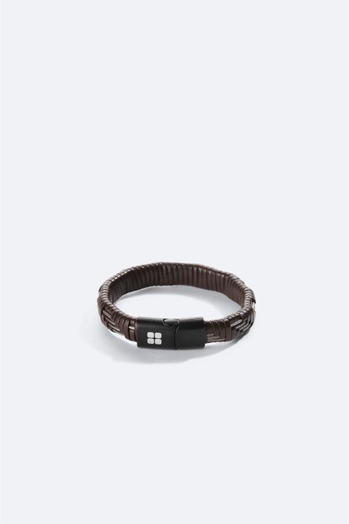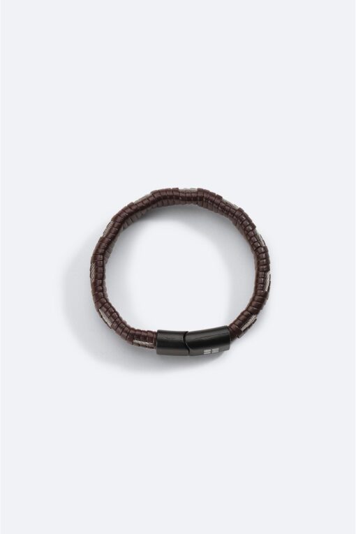 Avva Erkek Kahverengi Hematit Deri Bileklik A41y9614