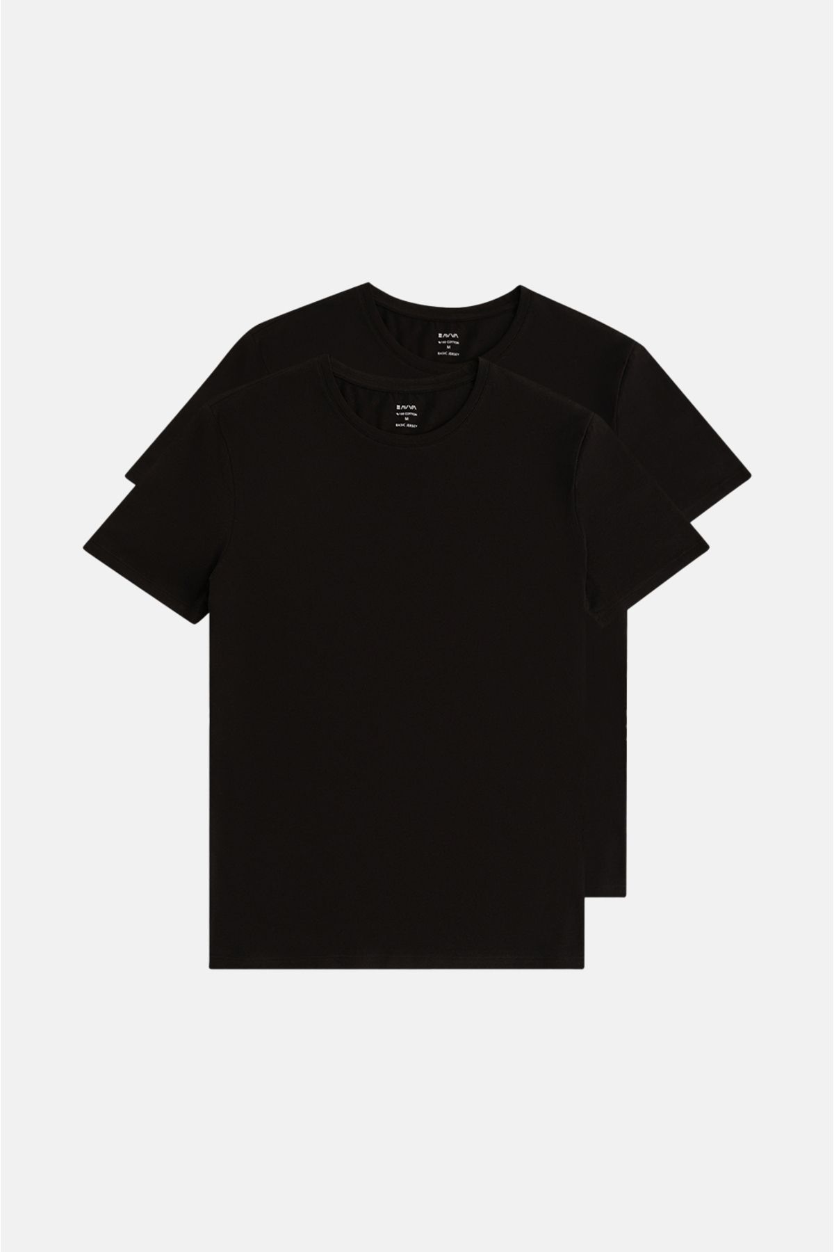 Avva Erkek Siyah 2’li %100 Pamuk Bisiklet Yaka T-shirt E001011